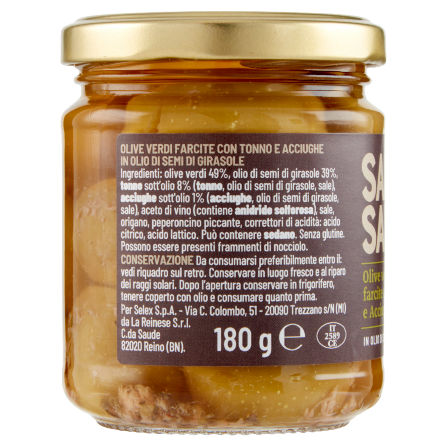 Olive verdi farcite con tonno e acciughe in olio di semi di girasole