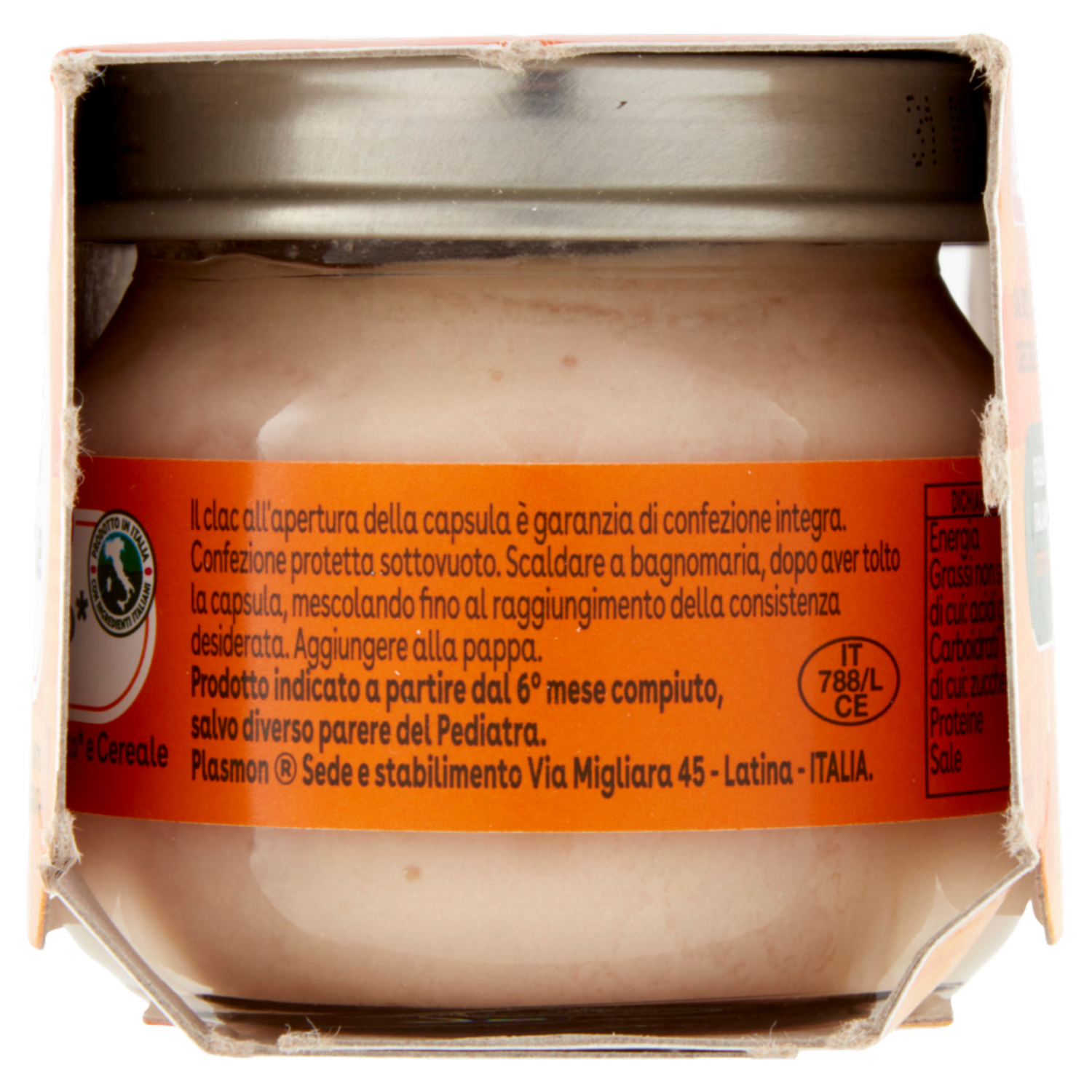 Prodotto indicato a partire dal 6° mese compiuto, salvo diverso parere del pediatra. Scaldare a bagnomaria, dopo aver tolto la capsula, mescolando fino al raggiungimento della consistenza desiderata. Aggiungere alla pappa.
