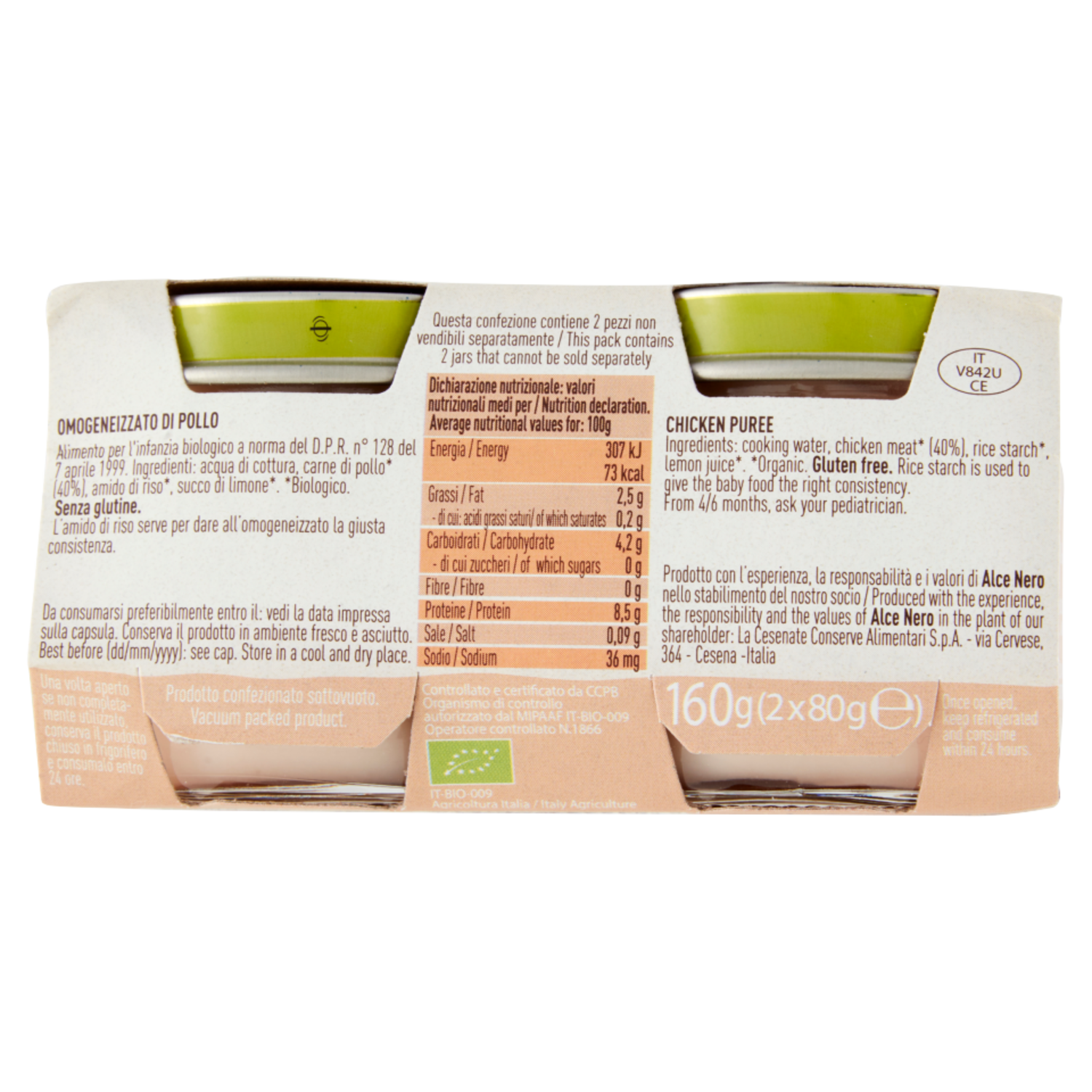 Omogeneizzato di pollo Alimento per l'infanzia biologico a norma del D.P.R. n° 128 del 7 aprile 1999