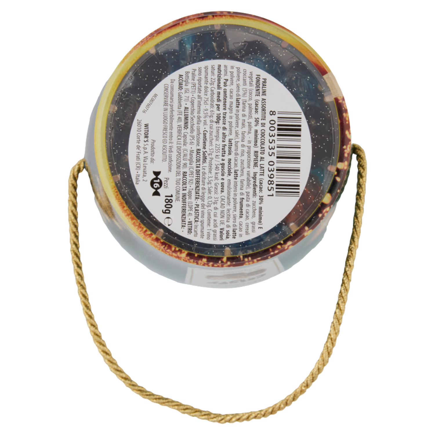 Praline assortite di cioccolato al latte (cacao: 30% minimo) e fondente (cacao: 50% minimo) ripiene Vino spumante dolce