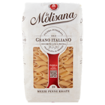La Molisana Antico Molino e Pastificio in Campobasso 1912 Famiglia Ferro Azienda 100% italiana da filiera integrata Fondata nel 1912 da una famiglia di imprenditori italiani, interamente di proprietà italiana. Il grano Utilizziamo solo grano coltivato in Molise, Abruzzo, Puglia, Lazio e Marche, regioni da sempre vocate alla produzione di grano duro di alta qualità. Il molino Maciniamo da cinque generazioni il miglior grano, lo decortichiamo a pietra per produrre semole più sicure dal punto di vista igienico-sanitario. Il pastificio Trafiliamo al bronzo per ottenere una pasta ruvida e tenace con un'eccellente tenuta in cottura. L'acqua Impastiamo le nostre semole con acqua pura, iposodica con caratteristiche oligominerali delle sorgenti del Matese. LifeGate impatto zero CO₂ La Molisana partecipa al progetto Impatto Zero di Lifegate grazie al quale sono state calcolate, ridotte e compensate le emissioni di CO2 derivanti dalla produzione di questa confezione, tramite l'acquisto di crediti di carbonio generati dalla creazione e tutela di foreste nel mondo. Aria pura di montagna Acqua cristallina di sorgente Mugnai da cinque generazioni
