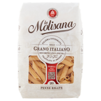 La Molisana Antico Molino e Pastificio in Campobasso 1912 Famiglia Ferro Azienda 100% italiana da filiera integrata Fondata nel 1912 da una famiglia di imprenditori italiani, interamente di proprietà italiana. Il grano Utilizziamo solo grano coltivato in Molise, Abruzzo, Puglia, Lazio e Marche, regioni da sempre vocate alla produzione di grano duro di alta qualità. Il molino Maciniamo da cinque generazioni il miglior grano, lo decortichiamo a pietra per produrre semole più sicure dal punto di vista igienico-sanitario. Il pastificio Trafiliamo al bronzo per ottenere una pasta ruvida e tenace con un'eccellente tenuta in cottura. L'acqua Impastiamo le nostre semole con acqua pura, iposodica con caratteristiche oligominerali delle sorgenti del Matese. LifeGate impatto zero CO₂ La Molisana partecipa al progetto Impatto Zero di Lifegate grazie al quale sono state calcolate, ridotte e compensate le emissioni di CO2 derivanti dalla produzione di questa confezione, tramite l'acquisto di crediti di carbonio generati dalla creazione e tutela di foreste nel mondo. Aria pura di montagna Acqua cristallina di sorgente Mugnai da cinque generazioni