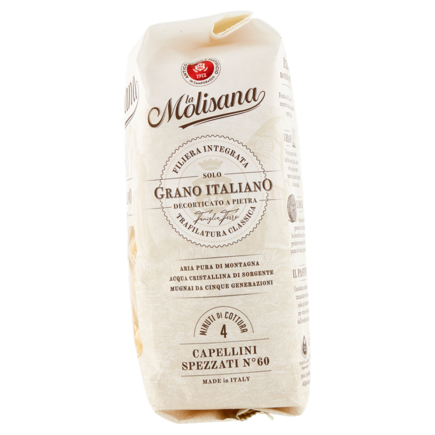 La Molisana Antico Molino e Pastificio in Campobasso 1912 Famiglia Ferro Azienda 100% italiana da filiera integrata Fondata nel 1912 da una famiglia di imprenditori italiani, interamente di proprietà italiana. Il grano Utilizziamo solo grano coltivato in Molise, Abruzzo, Puglia, Lazio e Marche, regioni da sempre vocate alla produzione di grano duro di alta qualità. Il molino Maciniamo da cinque generazioni il miglior grano, lo decortichiamo a pietra per produrre semole più sicure dal punto di vista igienico-sanitario. Il pastificio Custodiamo competenze tramandate e investiamo nella più moderna tecnologia per ottenere una pasta tenace e dall'eccellente tenuta in cottura. L'acqua Impastiamo le nostre semole con acqua pura, iposodica con caratteristiche oligominerali delle sorgenti del Matese. Aria pura di montagna Acqua cristallina di sorgente Mugnai da cinque generazioni