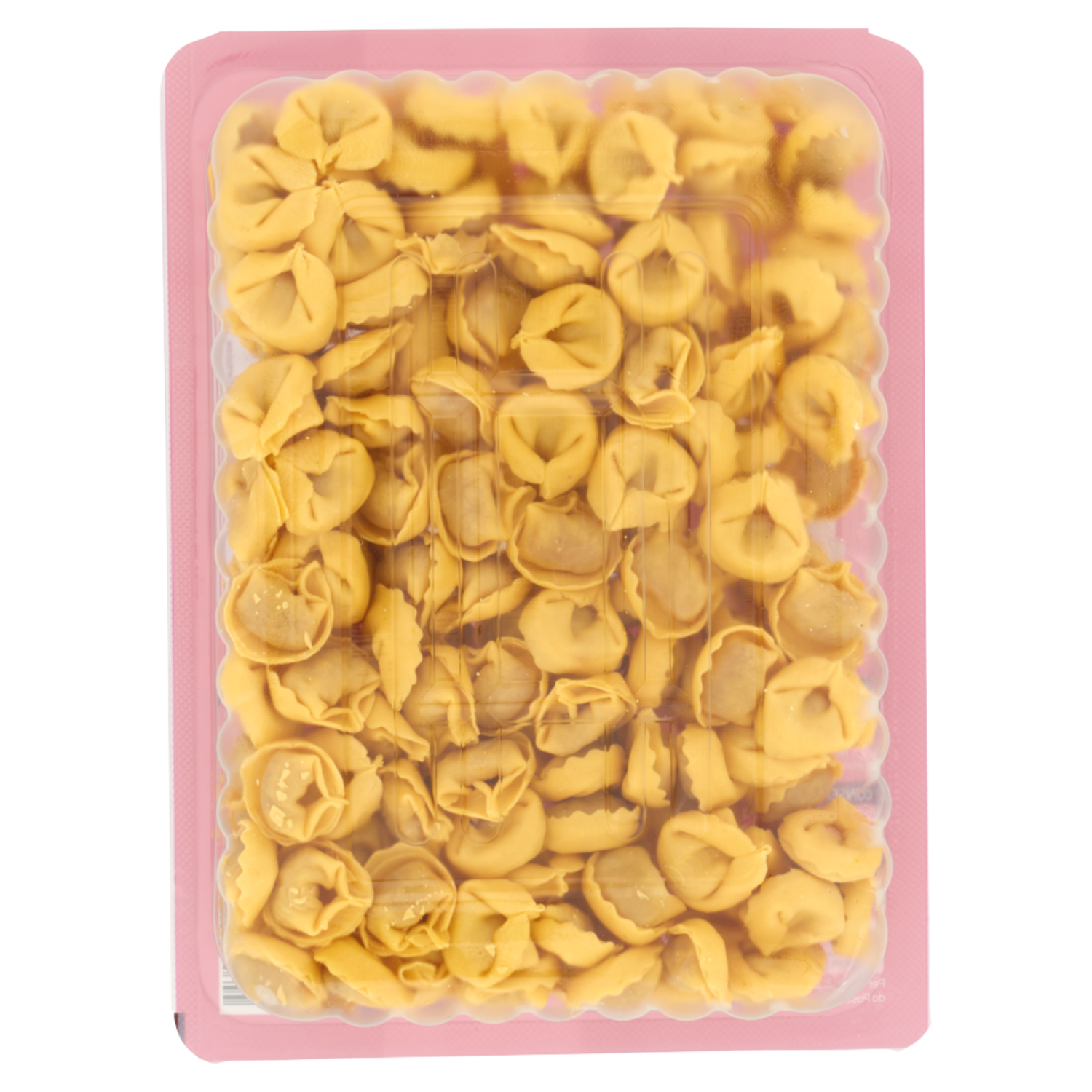 Ripieno 33% [mortadella (carne di suino, proteine del latte, sale, aromi, spezie, zucchero, pistacchi), pangrattato (farina di grano tenero, lievito di birra, sale), prosciutto crudo 18% - 6% sul totale (carne di suino, sale), carne di suino, carne di bovino, aromi, formaggio Grana Padano DOP (latte, sale, caglio, conservante: lisozima-proteina dell'uovo), siero di latte, fibra vegetale, spezie]