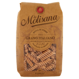 La Molisana Antico Molino e Pastificio in Campobasso 1912 Famiglia Ferro Azienda 100% italiana da filiera integrata Fondata nel 1912 da una famiglia di imprenditori italiani, interamente di proprietà italiana. Il grano Utilizziamo solo grano coltivato in Molise, Abruzzo, Puglia, Lazio e Marche, regioni da sempre vocate alla produzione di grano duro di alta qualità. Il molino Maciniamo da cinque generazioni il miglior grano, lo decortichiamo a pietra per produrre semole più sicure dal punto di vista igienico-sanitario. Il pastificio Trafiliamo al bronzo per ottenere una pasta ruvida e tenace con un'eccellente tenuta in cottura. L'acqua Impastiamo le nostre semole con acqua pura, iposodica con caratteristiche oligominerali delle sorgenti del Matese. Lifegate impatto zero CO₂ La Molisana partecipa al progetto Impatto Zero di LifeGate grazie al quale sono state calcolate, ridotte e compensate le emissioni di CO2 prodotte da questa confezione tramite l'acquisto di crediti di carbonio generati dalla creazione e tutela di foreste in crescita in Madagascar, Brasile e Italia. Ricca di fibre Acqua cristallina di sorgente Mugnai da cinque generazioni