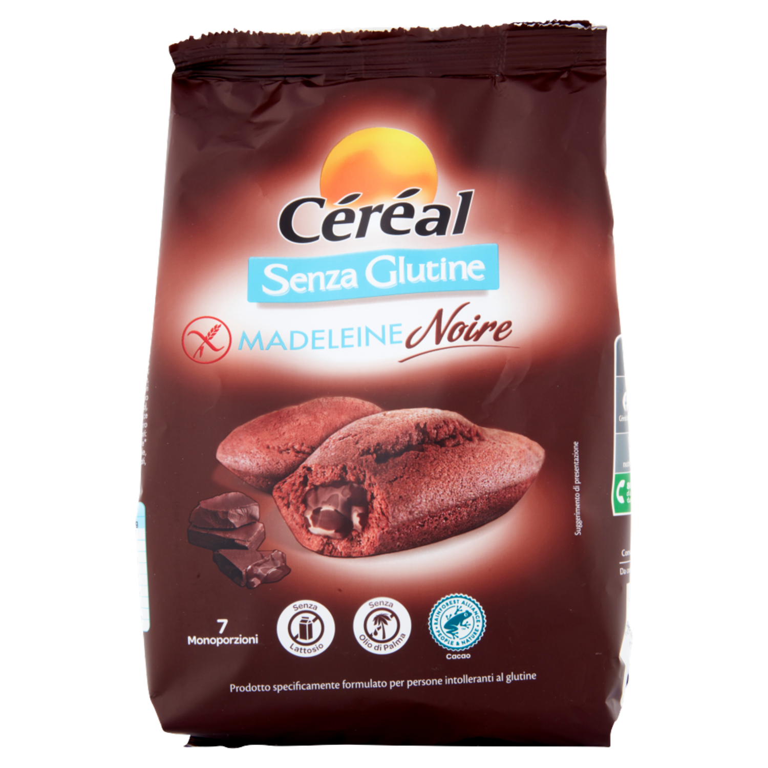 Céréal si impegna per voi Le Madeleine Noire Céréal sono prodotte con la massima cura: - Senza Glutine - Senza Lattosio - Senza Latte - Senza Olio di Palma - Con cacao da coltivazione più sostenibile Si consiglia di utilizzare il prodotto nell'ambito di una dieta varia ed equilibrata ed uno stile di vita sano.