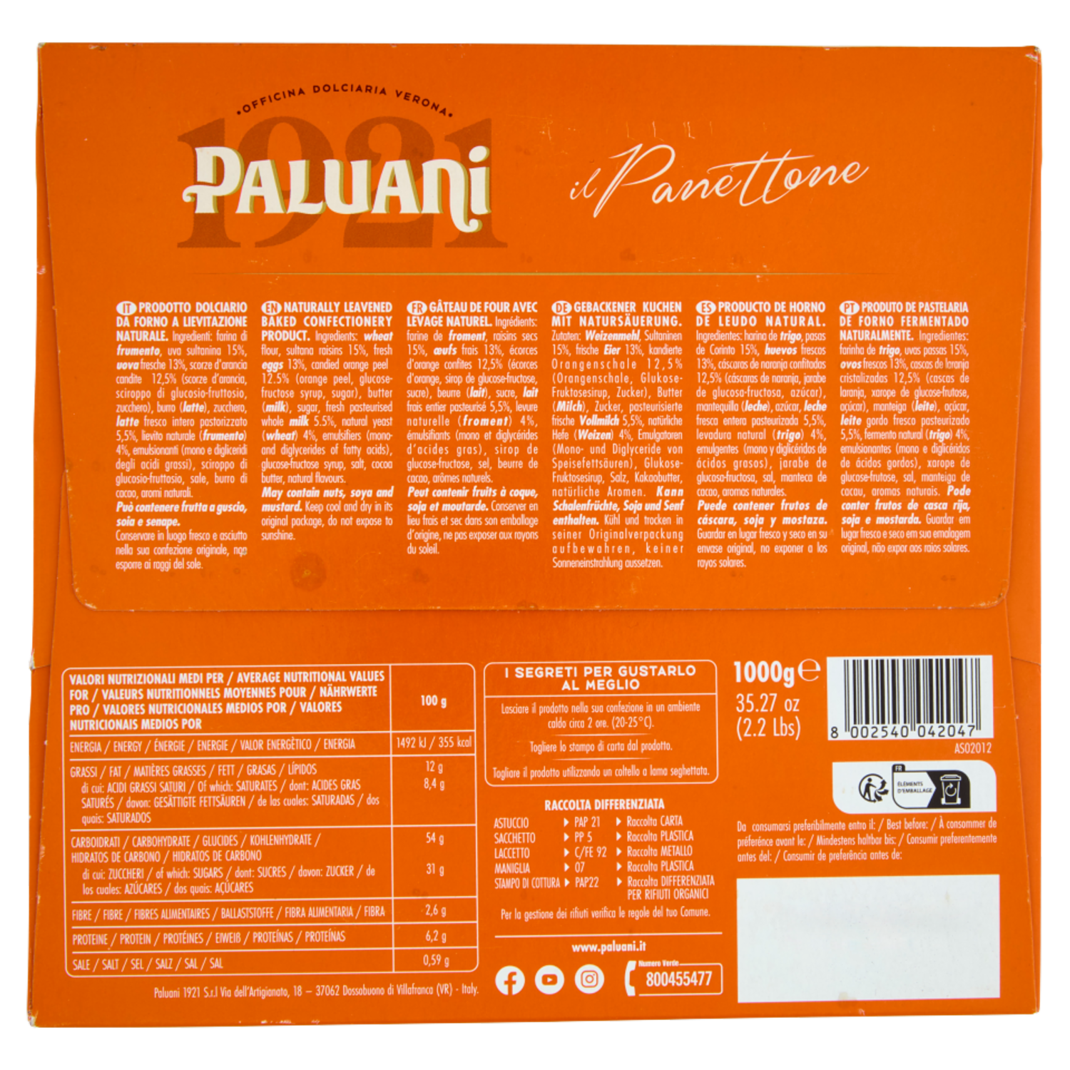 Un soffice impasto arricchito dai nostri due ingredienti più antichi: tempo e passione 40 ore di lenta lievitazione naturale e la straordinaria esperienza dei nostri pasticceri. È così che un panettone Paluani diventa un assaggio di gioia per voi, dal 1921. Scopri perchè il nostro panettone di soffice è ancora più buono: Ingredienti selezionati Gli ingredienti sono la base di tutte le grandi ricette, per questo li scegliamo ogni giorno con cura e li trattiamo con rispetto per creare dolci sempre più buoni Tempo e lievitazione naturale Ogni giorno sforniamo i nostri dolci senza fretta, lasciando all'impasto il tempo di lievitare e raffreddarsi naturalmente, per questo il nostro panettone è così soffice Esperienza e passione pasticcera Da sempre siamo alla continua ricerca della bontà, grazie alla passione e alla straordinaria esperienza dei nostri pasticceri. È così che il nostro panettone diventa un assaggio di gioia per voi, dal 1921 Qualità e rispetto per l'ambiente Nel nostro ciclo produttivo utilizziamo solo energia elettrica proveniente al 100% da fonti rinnovabili e il nostro sistema qualità è certificato ISO 9001