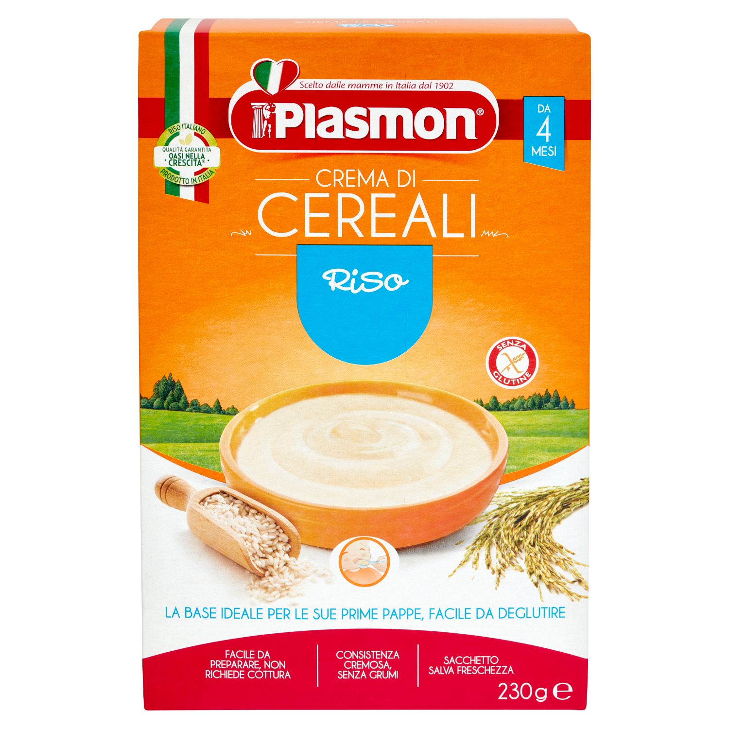 Una ricetta semplice e di facile preparazione, adatta ad accompagnare il tuo bambino nel passaggio dal latte alla pappa Riso italiano Qualità Garantita Oasi nella Crescita Prodotto in Italia Noi di Plasmon, grazie ad Oasi nella Crescita, garantiamo la completa rintracciabilità delle nostre materie prime dal campo alla sua pappa Senza conservanti e coloranti, come per legge