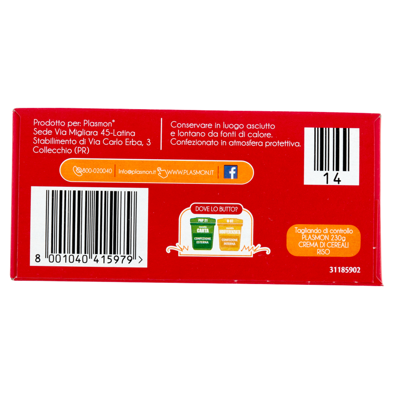 Prodotto per: Plasmon Sede Via Migliara 45 Latina Stabilimento di Via Carlo Erba, 3 Collecchio (PR)
