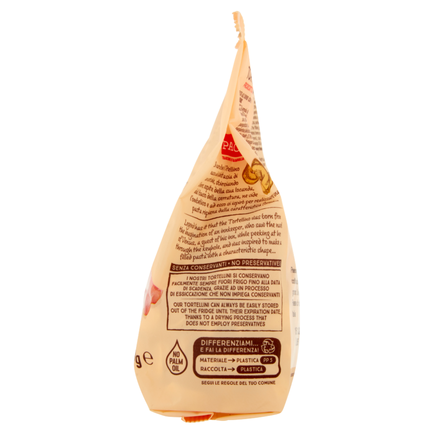 Si narra che il Tortellino nasca dalla fantasia di un oste che, sbirciando Venere, ospite della sua locanda, dal buco della serratura, ne vide l'ombelico e ad esso si ispirò per realizzare una pasta ripiena dalla caratteristica forma... Senza conservanti I nostri tortellini si conservano facilmente sempre fuori frigo fino alla data di scadenza, grazie ad un processo di essiccazione che non impiega conservanti