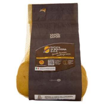 Patata di Bologna DOP Patate di varietà Primura, riconosciuta per le caratteristiche organolettiche e dalla versatilità in cucina; tuberi di forma ovale - allungata, dalla buccia liscia; polpa di colore variabile dal bianco al giallo paglierino; calibro compreso tra 40 e 75mm. Categoria: 1. B.D.N.O.O. : 0001694. Origine: Italia - Emilia-Romagna.