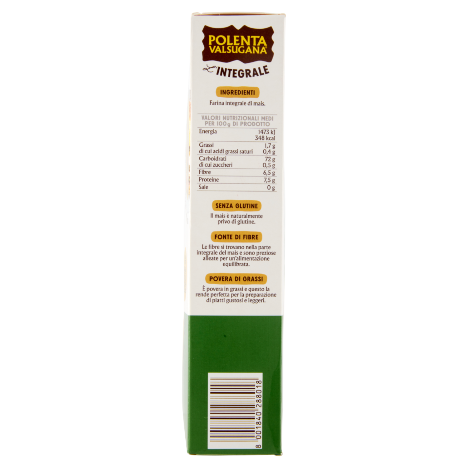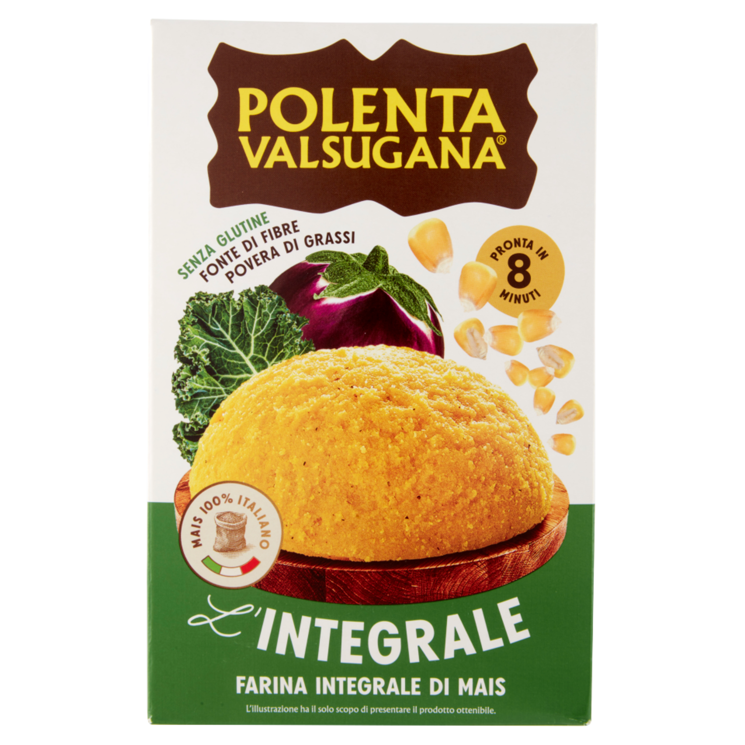 La bontà unica di Polenta Valsugana è il risultato di un lungo lavoro di ricerca della qualità delle materie prime. Polenta Valsugana Integrale è fatta solo con farina di mais integrale. È realizzata dalla macinazione di chicchi di mais interi, da cui si ottiene una farina ricca di crusca che contiene fibre, preziose alleate per un'alimentazione equilibrata. Senza glutine Il mais è naturalmente privo di glutine. Fonte di fibre Le fibre si trovano nella parte integrale del mais e sono preziose alleate per un'alimentazione equilibrata. Povera di grassi È povera in grassi e questo la rende perfetta per la preparazione di piatti gustosi e leggeri.