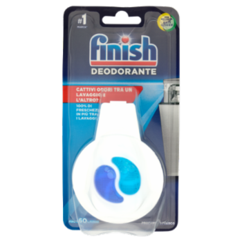 Finish Deodorante Tra un lavaggio e l'altro, i residui di sporco potrebbero essere la causa dei cattivi odori nella tua lavastoviglie. Grazie alla sua esclusiva tecnologia Anti Odore, Finish Deodorante Profumo di Fresco ti garantisce il 100% di freschezza in più tra i lavaggi**, così potrai godere di un profumo rinfrescante ogni volta che aprirai la tua lavastoviglie. **Fragranza 2 volte più fresca e percezione meno intensa del cattivo odore tra un lavaggio e l'altro rispetto al non utilizzo del prodotto