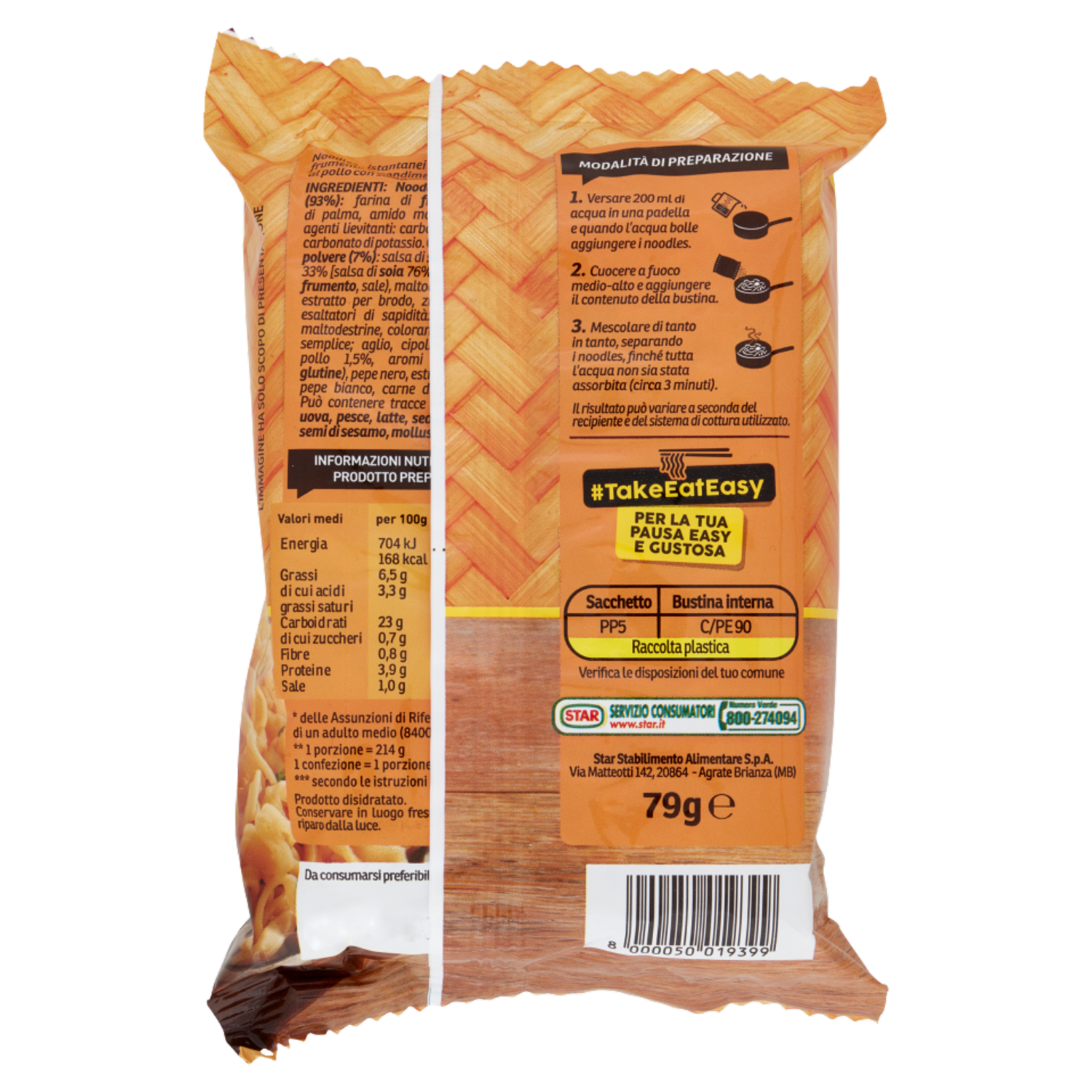 Noodles istantanei (93%): farina di frumento, olio di palma, amido modificato, sale, agenti lievitanti: carbonato di sodio, carbonato di potassio