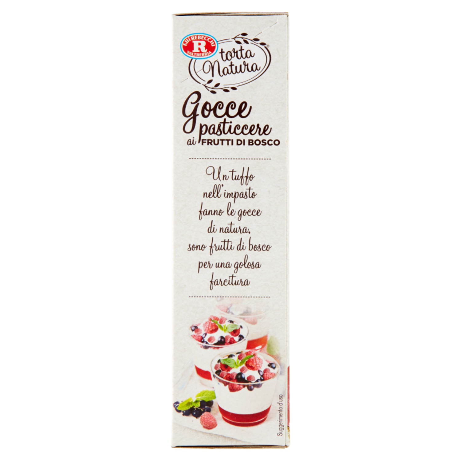Ideali per arricchire tutti i tipi di torte e dolci a impasto morbido. Particolarmente apprezzate per la loro piccola dimensione si propongono anche per la decorazione a freddo sopra a gelati, dolci e semifreddi. Un tuffo nell'impasto fanno le gocce di natura, sono frutti di bosco per una golosa farcitura