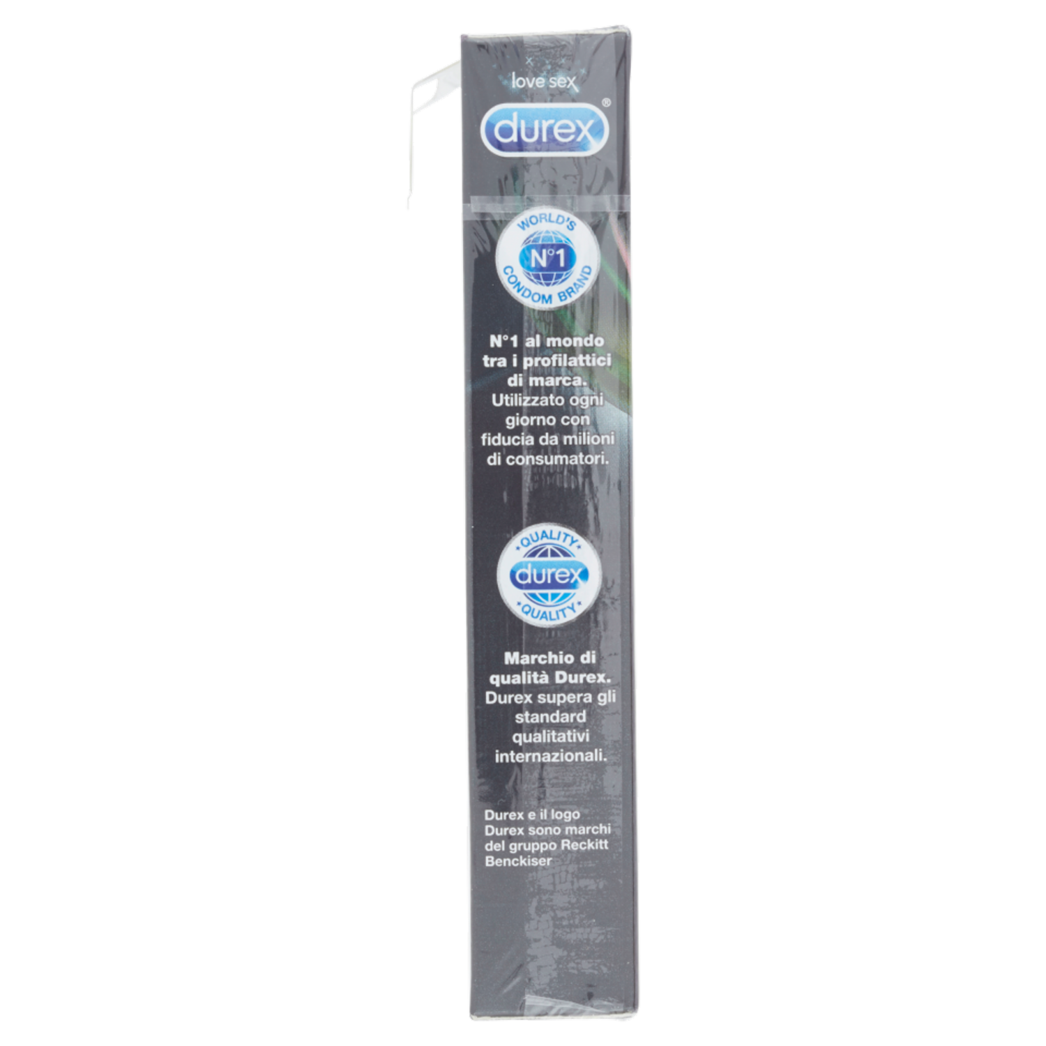 N°1 al mondo tra i profilattici di marca. Utilizzato ogni giorno con fiducia da milioni di consumatori. Marchio di qualità Durex. Durex supera gli standard qualitativi internazionali.