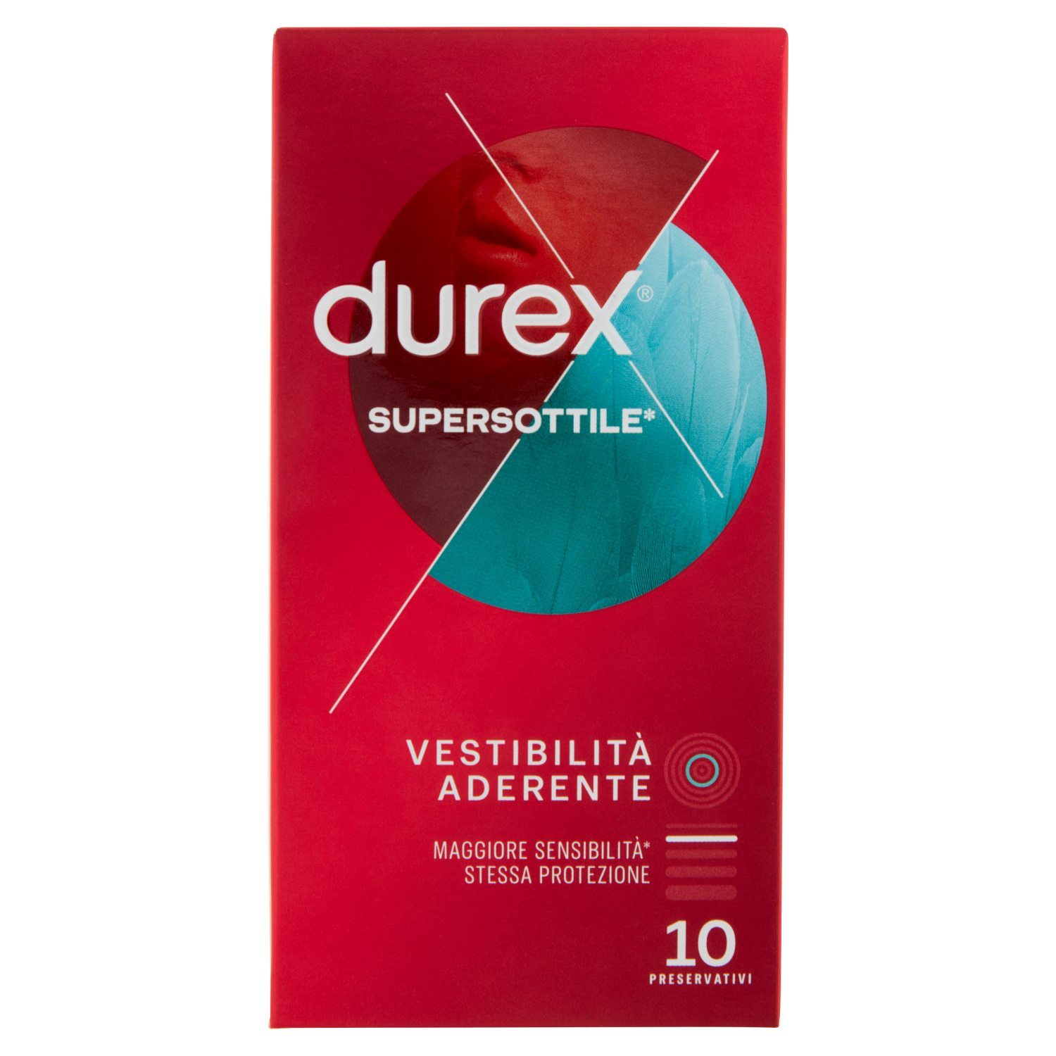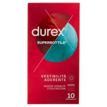 I preservativi Durex Supersottile* Vestibilità Aderente sono adatti per il comfort di coloro che preferiscono una taglia più stretta rispetto ai preservativi Durex Supersottile*. *comparato con i normali preservativi in lattice Durex Trova il preservativo più adatto a te Ognuno è diverso, ma il preservativo giusto deve essere sempre comodo e sicuro. Forma Easy-On. Con serbatoio 10 Preservativi Circonferenza - Vestibilità aderente (Larghezza nominale 52,5mm) Lubrificazione - Con lubrificante a base siliconica Spessore - Extra Sottile Lattice - Preservativi trasparenti in lattice di gomma naturale. Odore gradevole - Il modo in cui produciamo i preservativi Durex li rende più gradevoli all'olfatto. Trova il preservativo più adatto a te - www.durex.it