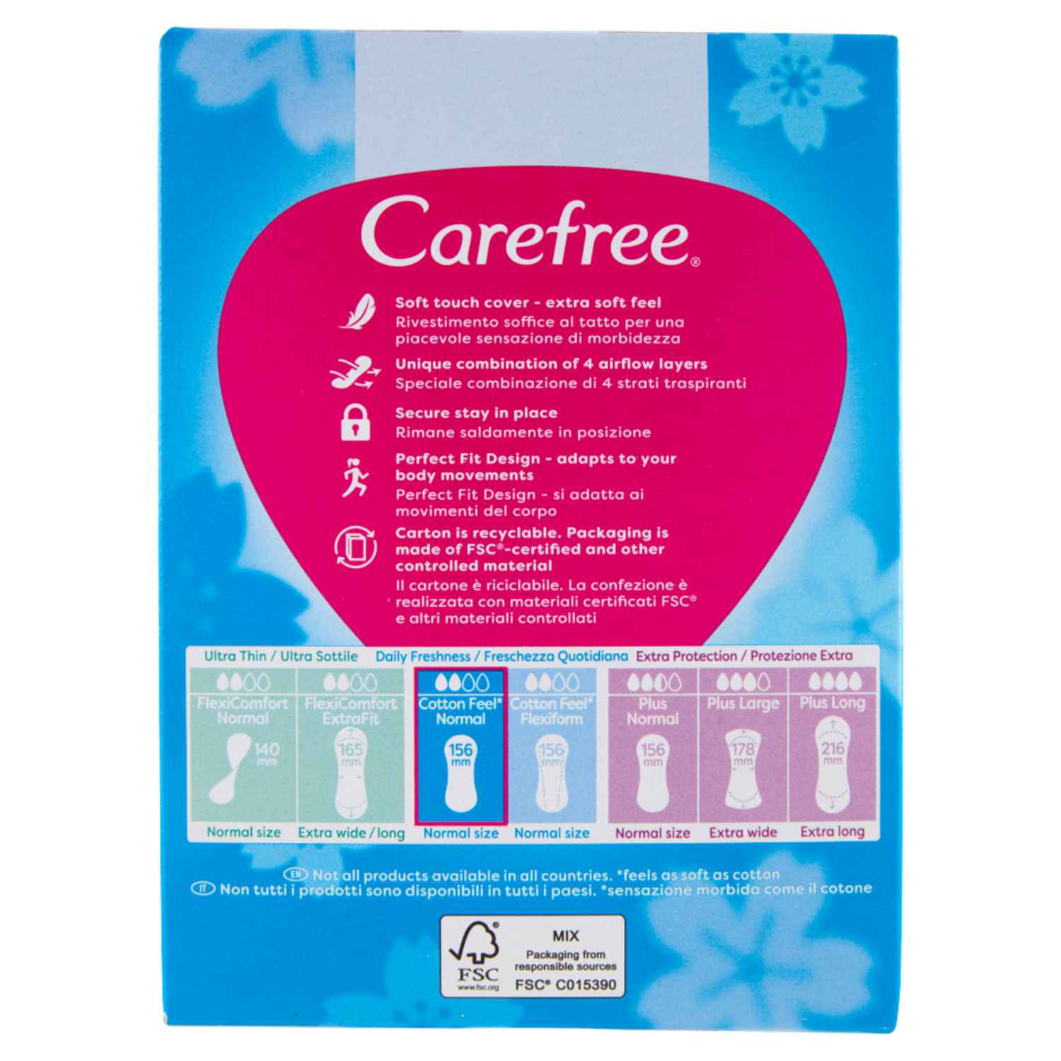 *Sensazione morbida come il cotone Carefree Cotton Feel* Normal Fragranza all'Aloe Vera Consultare la data di produzione sulla confezione. *sensazione morbida come il cotone