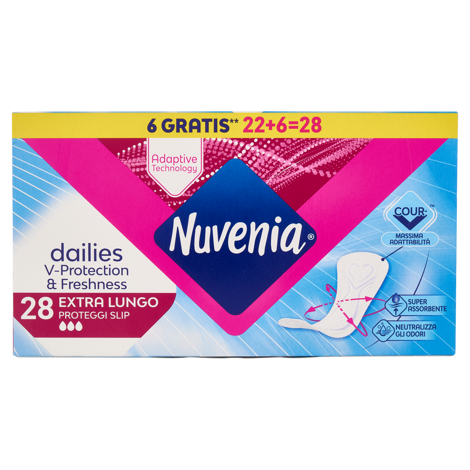 V-Fresca & Protetta La forma, il colore, l'odore della tua V-Zone ...tutto è unico di te. Qualsiasi tipo di protezione preferisci o livello di freschezza, noi abbiamo il proteggi slip più adatto a te. La tua V-Zona (che non è solo tua vagina o vulva!) è unica ed è importante prendersene cura nel modo giusto ogni giorno. Cour-V - Massima adattabilità Una tecnologia unica, che davvero si adatta all'unicità delle tue forme, così da offrirti massimo comfort e protezione per tutta la giornata. Super assorbente - Neutralizza gli odori I nostri proteggi slip sono sottili e super assorbenti. Assorbono istantaneamente i fluidi e gli odori, e sono traspiranti per mantenere la tua V-Zona fresca. Testato dermatologicamente La tua V-Zone. Il tuo pianeta. Teniamo a entrambi. Il nostro obiettivo è Ridurre l'Impronta di Carbonio del 30% entro il 2030 con prodotti, imballaggi e processi produttivi sempre più sostenibili, utilizzando materiali riciclati e da fonti rinnovabili. Cosa c'è di nuovo *I nostri comodi proteggi slip sono prodotti e concepiti responsabilmente con un minore uso di risorse per ridurre l'impatto ambientale. Inoltre, per renderli ad impatto zero, per ogni confezione acquistata, investiamo nel ripristino delle aree forestali del pianeta, così da compensare le emissioni di carbonio prodotte. Maggiori informazioni sul sito www.nuvenia.it *La CO₂ è ridotta rispetto alla specifica di prodotto precedente basandoci sulle Valutazioni del Ciclo di Vita del prodotto condotte da Essity. Energia rinnovabile certificata