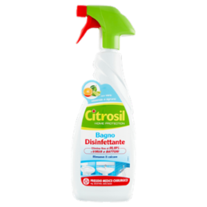 Citrosil Home Protection Bagno Disinfettante, elimina fino al 99,99% di virus e batteri e rimuove calcare e sporco ostinato da tutte le superfici del bagno, lasciandole pulite e brillanti. Inoltre, grazie alle essenze di origine vegetale, lascia un fresco e piacevole profumo naturale.
