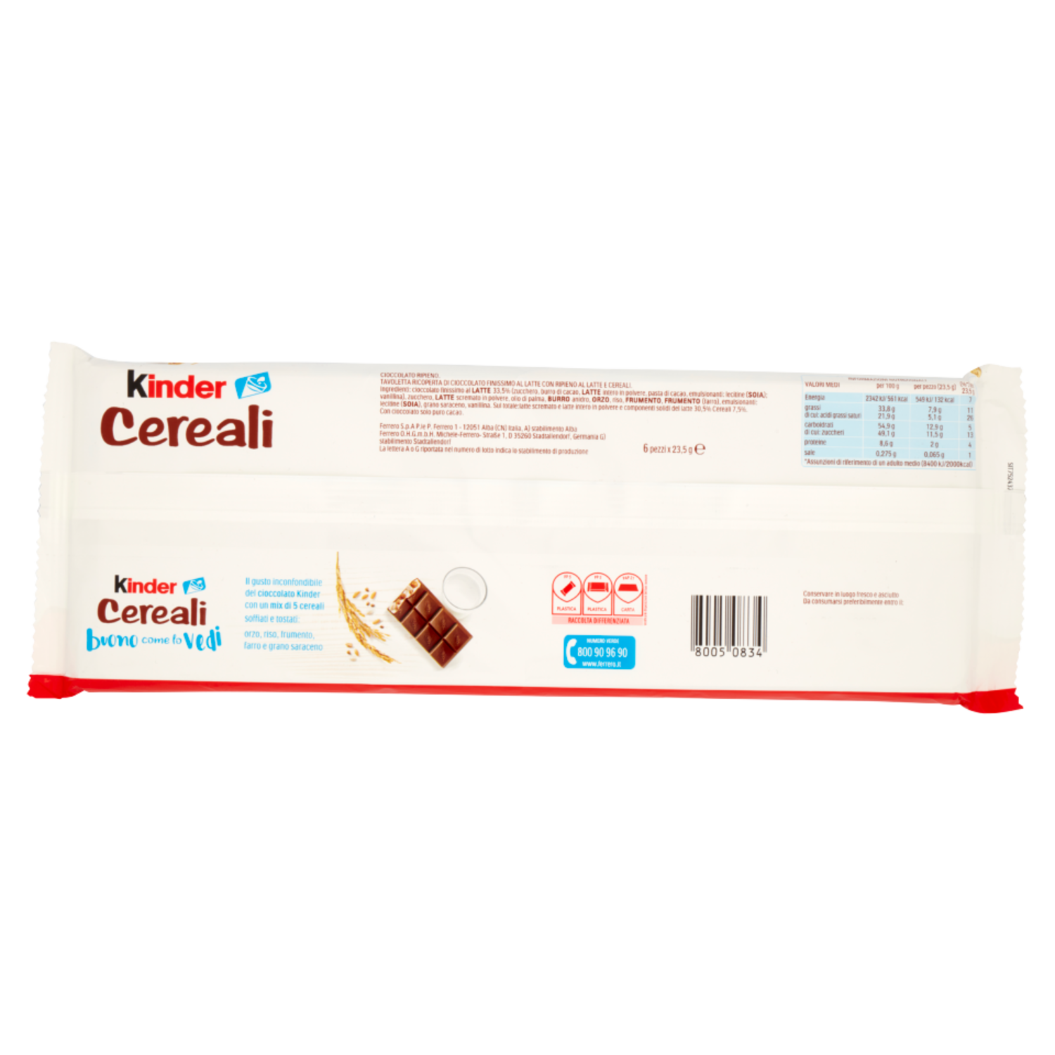 buono come lo vedi Il gusto inconfondibile del cioccolato Kinder con un mix di 5 cereali soffiati e tostati: orzo, riso, frumento, farro e grano saraceno