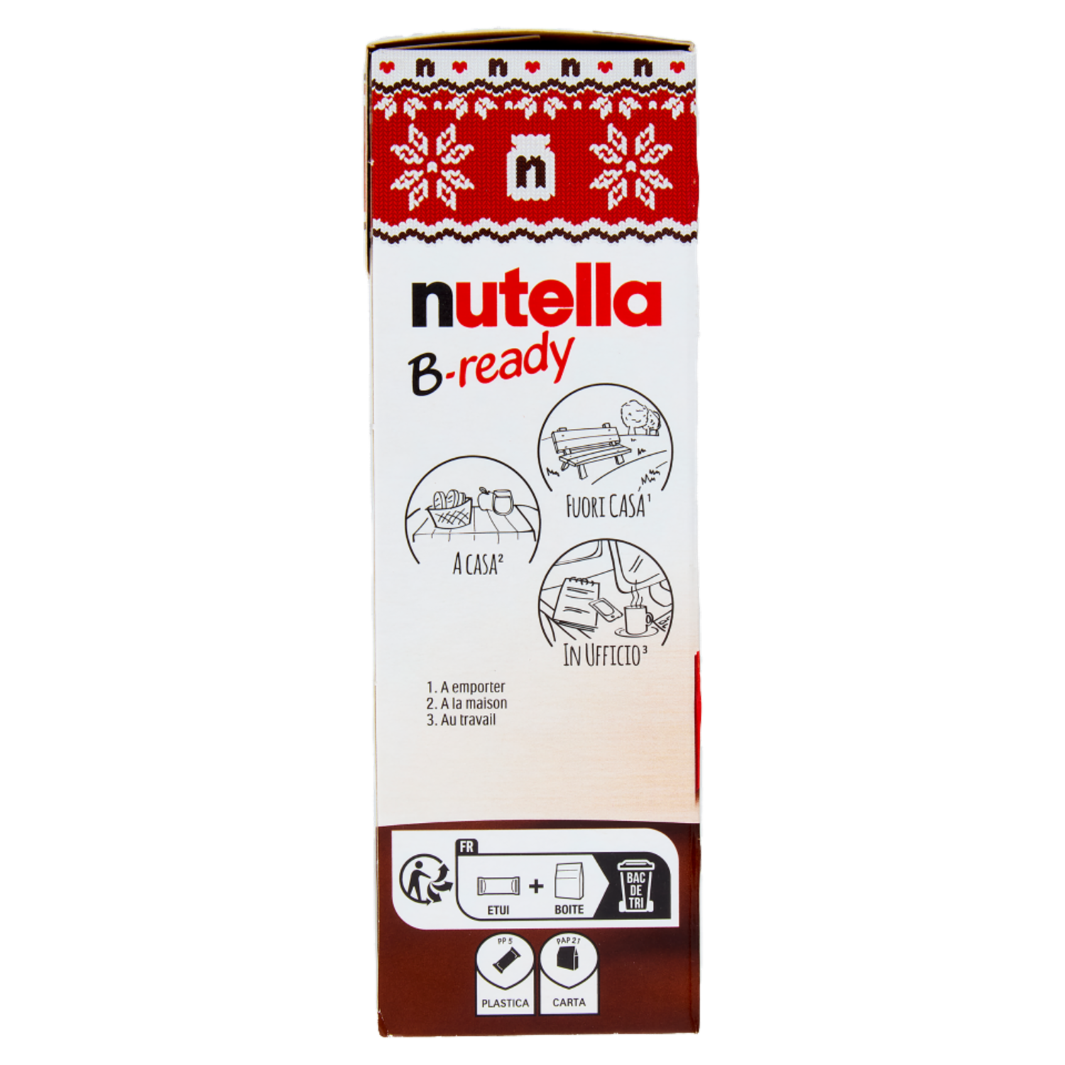 Cialda di pane di tipo "00" a forma di baguette, con farcitura di crema alle nocciole e al cacao Nutella e chicchi (2%) di cialda di pane