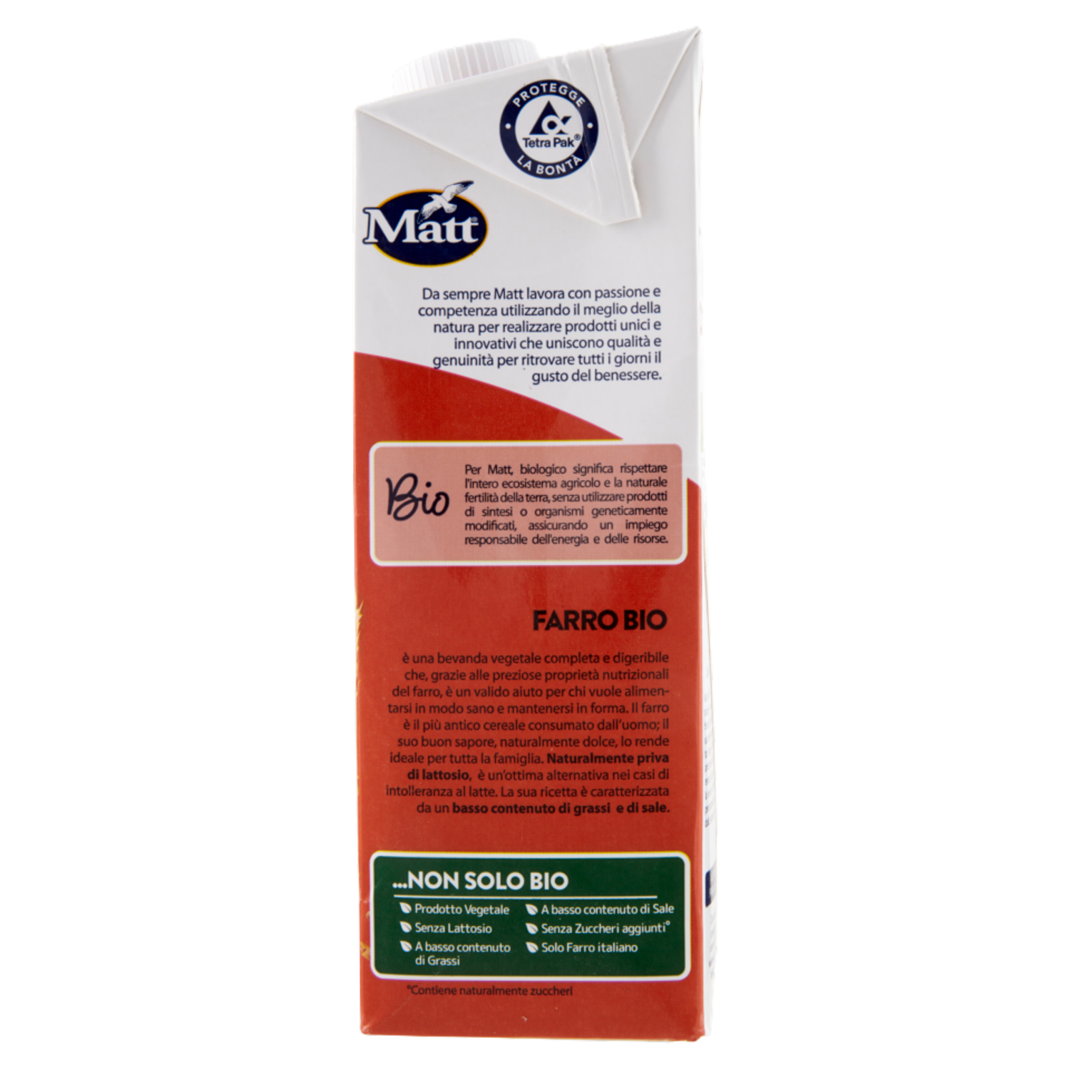 Matt Nutre il tuo benessere. Da sempre Matt lavora con passione e competenza utilizzando il meglio della natura per realizzare prodotti unici e innovativi che uniscono qualità e genuinità per ritrovare tutti i giorni il gusto del benessere. Bio Per Matt, biologico significa rispettare l'intero ecosistema agricolo e la naturale fertilità della terra, senza utilizzare prodotti di sintesi o organismi geneticamente modificati, assicurando un impiego responsabile dell'energia e delle risorse.