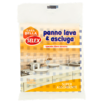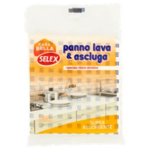 Il panno lava & asciuga Casa Bella Selex, grazie allo speciale rilievo abrasivo, è ideale per lo sporco di tutte le superficie della cucina, anche quello più difficile da rimuovere. La sua composizione assicura la massima assorbenza senza lasciare aloni o pelucchi.