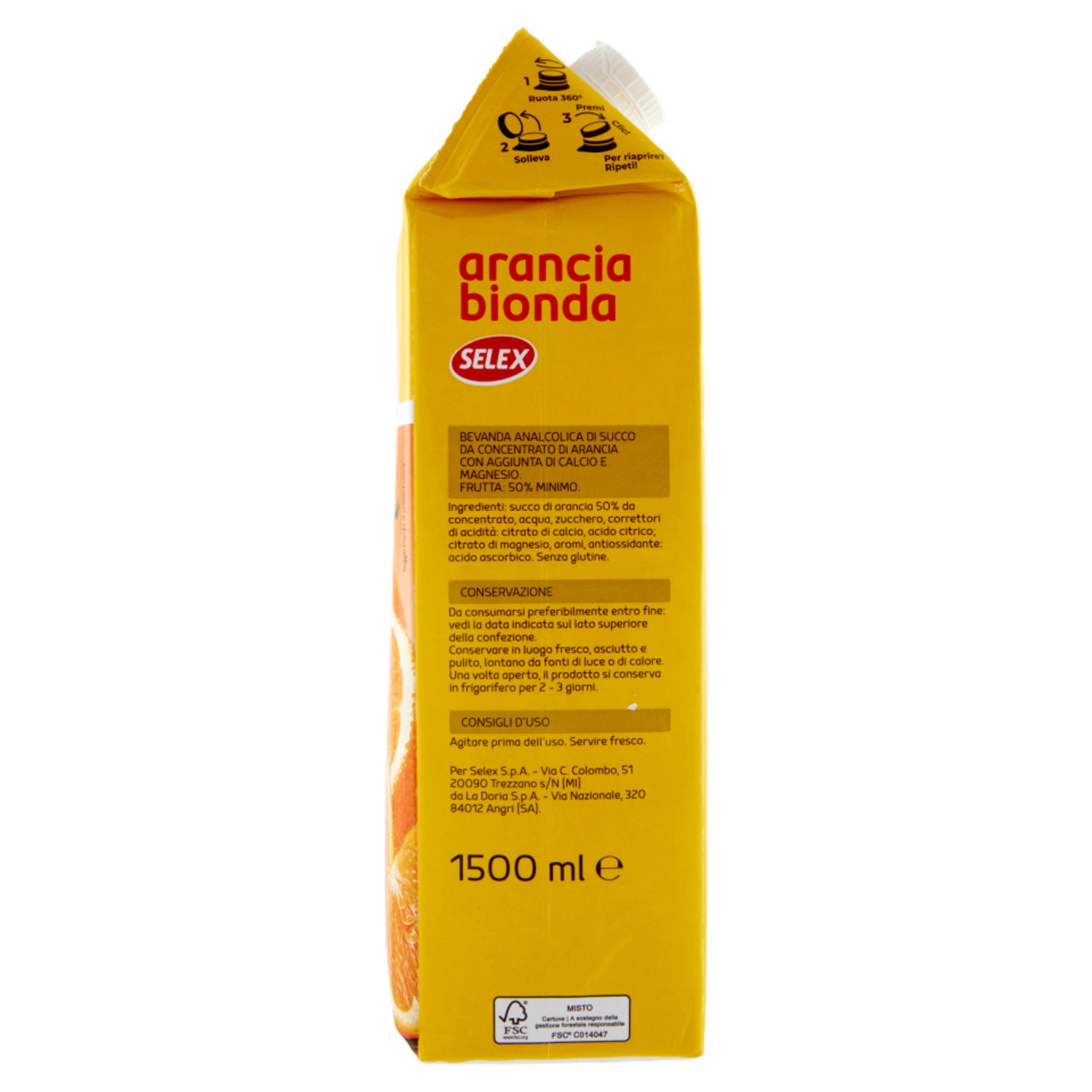 Conservazione Conservare in luogo fresco, asciutto e pulito, lontano da fonti di luce o di calore. Una volta aperto, il prodotto si conserva in frigorifero per 2 - 3 giorni.