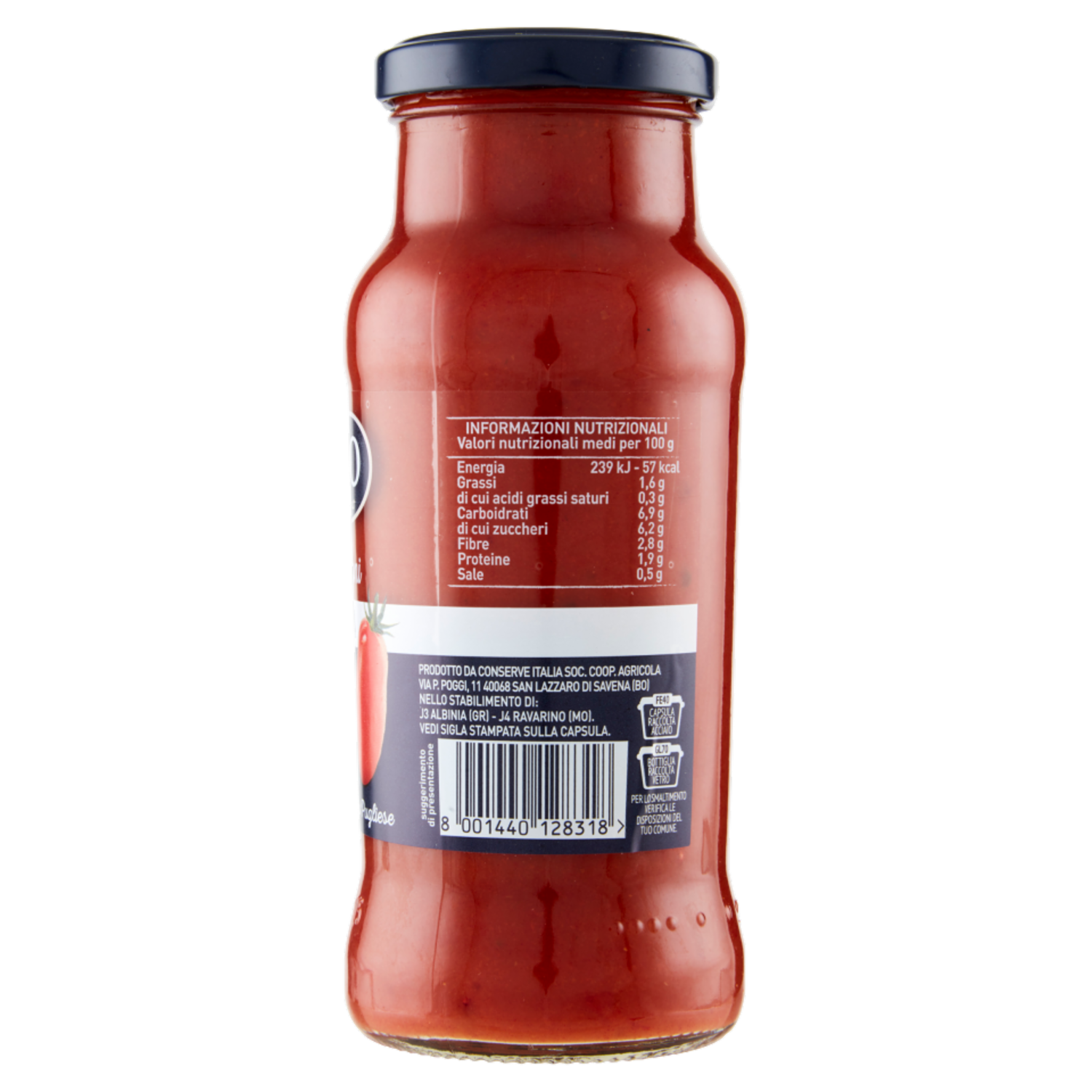 Prodotto da Conserve Italia Soc. Coop. Agricola Via P. Poggi, 11 40068 San Lazzaro di Savena (BO) nello stabilimento di: J3 Albinia (GR) J4 Ravarino (MO) Vedi sigla stampata sulla capsula