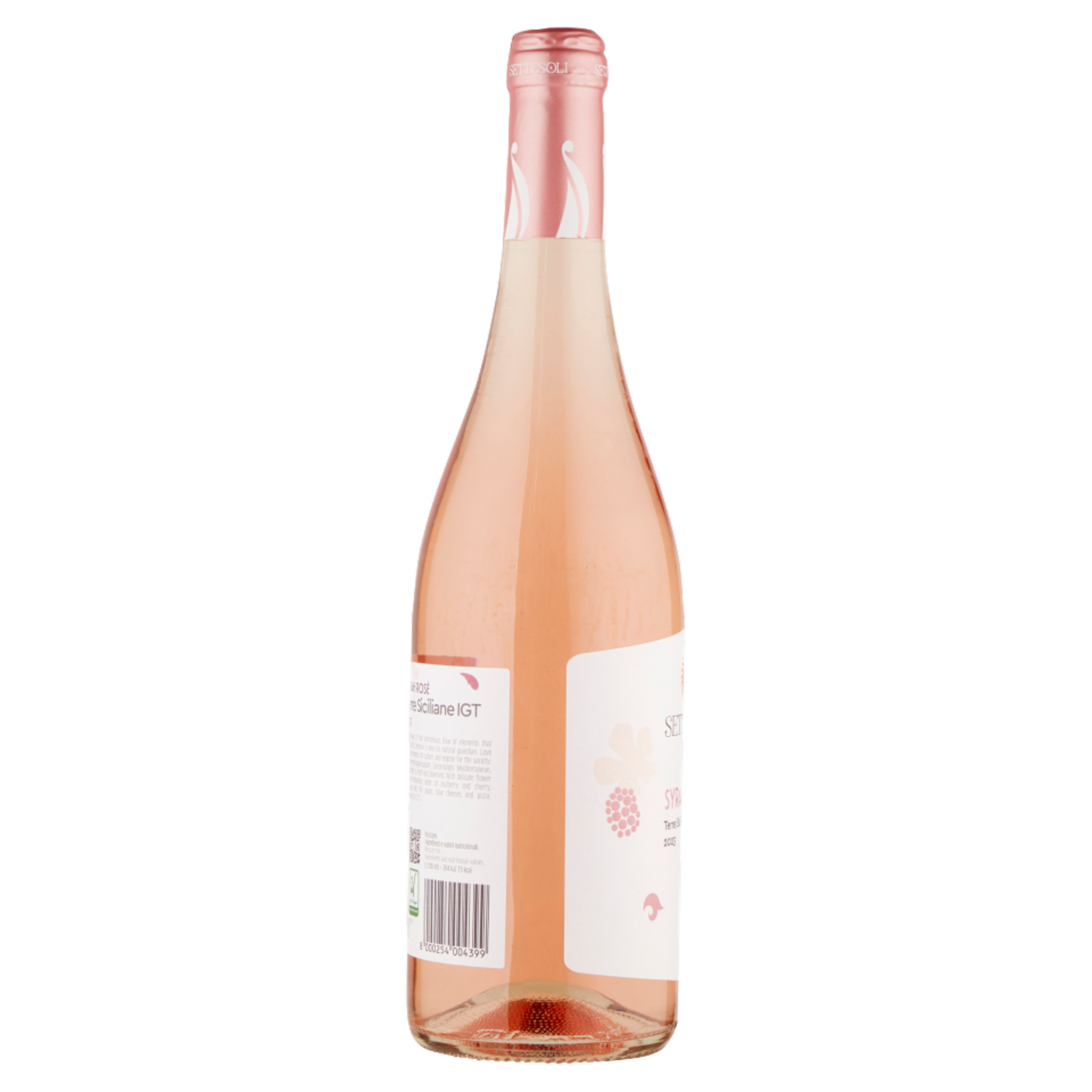 Syrah Rosé Terre Siciliane IGT, vino rosè italiano. Sorprendentemente mediterraneo, questo Syrah Rosé è fresco e armonico. Dai delicati sentori floreali e inebrianti note di gelso e ciliegia, è ideale da degustare con zuppe di pesce, formaggi erborinati e pizza. Servire a 10-12 °C. Terre Siciliane Indicazione Geografica Tipica