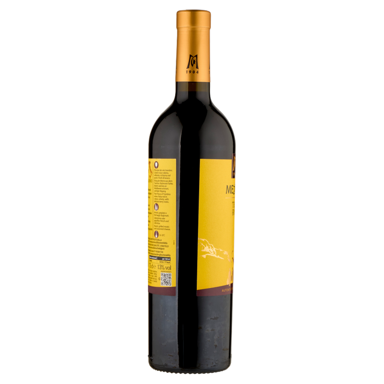 Caratteristiche: Principe dei vini trentini. Colore rosso rubino, vellutato, richiama nel gusto i frutti di bosco