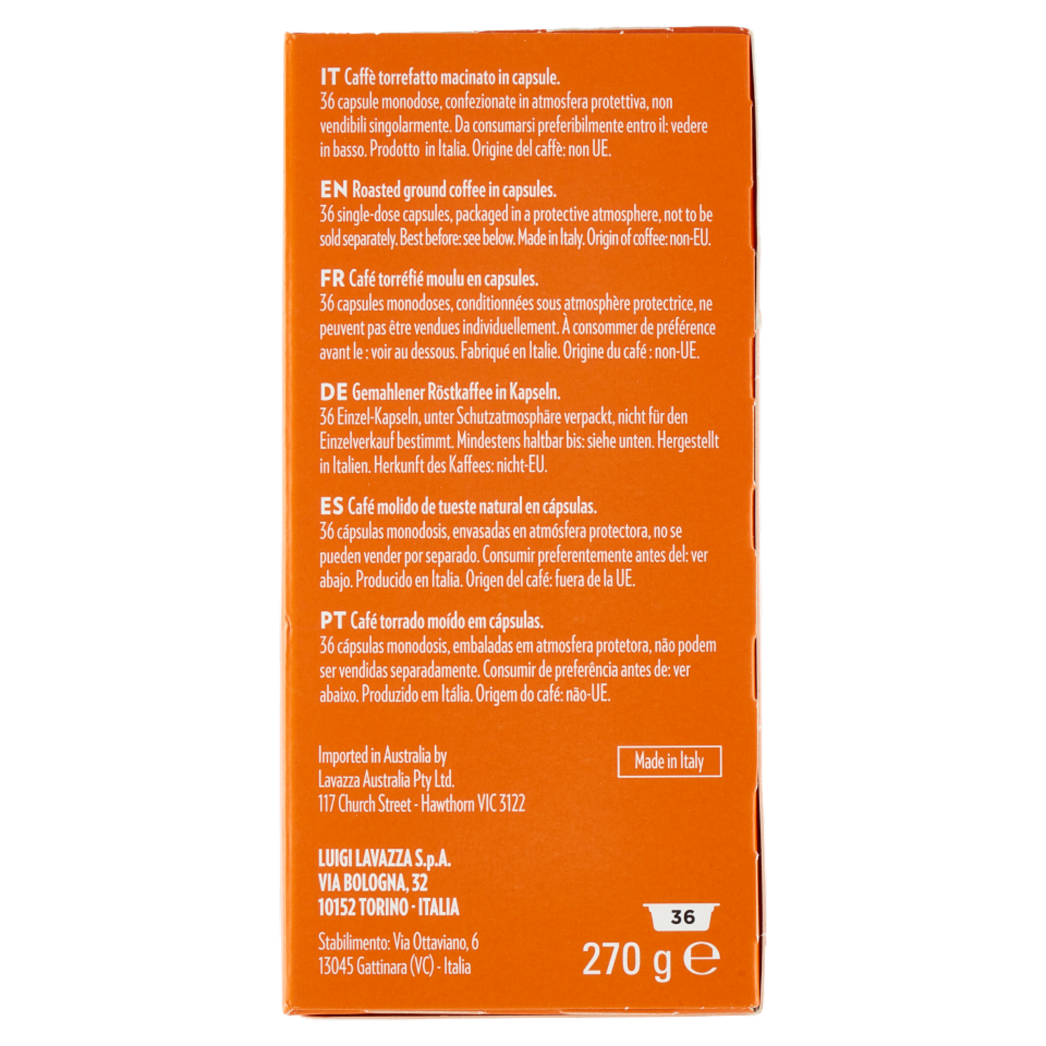 Caffè torrefatto macinato in capsule 36 capsule monodose, confezionate in atmosfera protettiva, non vendibili singolarmente