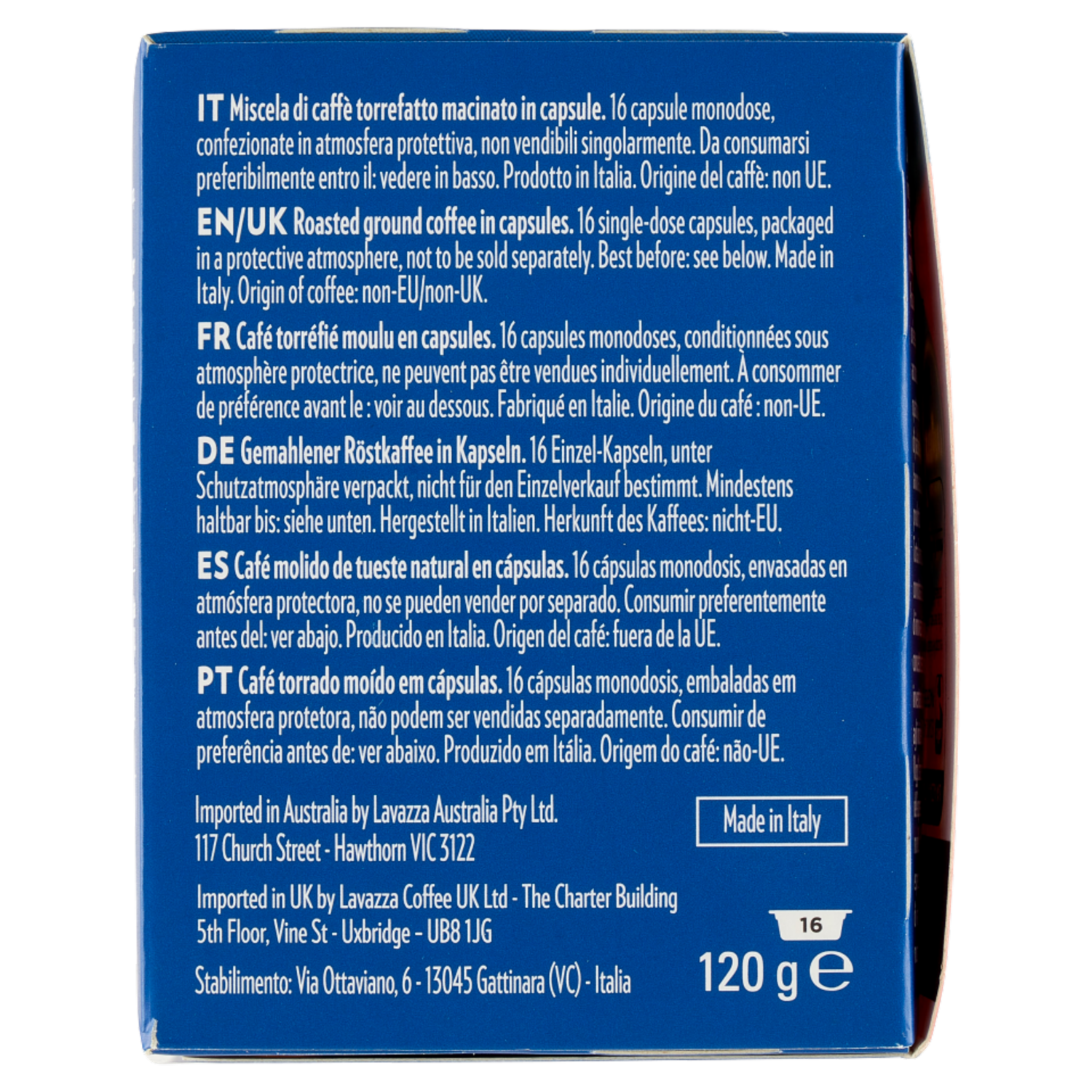 Miscela di caffè torrefatto macinato in capsule. 16 capsule monodose, confezionate in atmosfera protettiva, non vendibili singolarmente