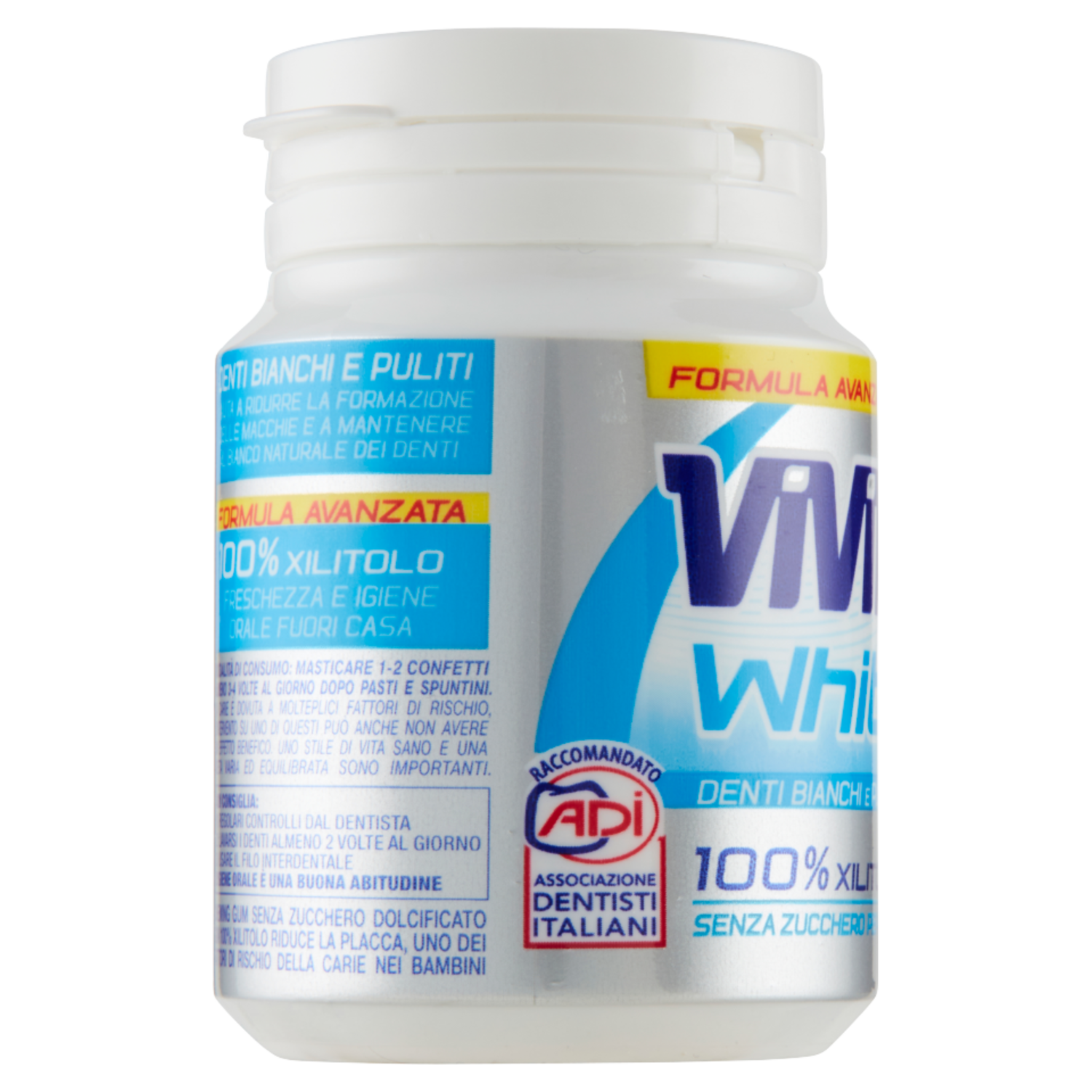 Denti bianchi e puliti Aiuta a ridurre la formazione delle macchie e a mantenere il bianco naturale dei denti Formula avanzata 100% Xilitolo freschezza e igiene orale fuori casa La carie è dovuta a molteplici fattori di rischio, l'intervento su uno di questi può anche non avere un effetto benefico. Uno stile di vita sano e una dieta varia ed equilibrata sono importanti. ADI Consiglia: 1) Regolari controlli dal dentista 2) Lavarsi i denti almeno 2 vote al giorno 3) Usare il filo interdentale L'igiene orale è una buona abitudine Chewing gum senza zucchero dolcificato con 100% xilitolo riduce la placca, uno dei fattori di rischio della carie nei bambini Raccomandato ADI - Associazione Dentisti Italiani