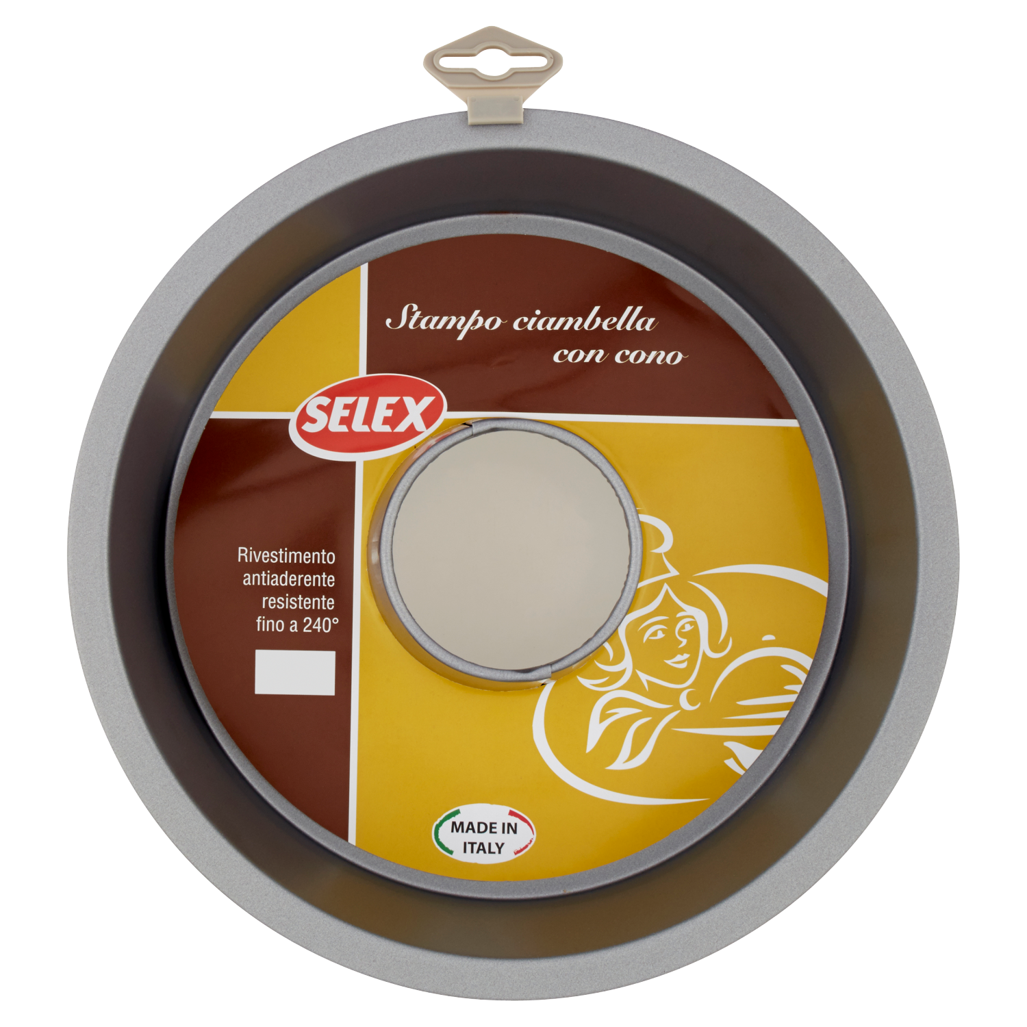 Stampo per ciambella con cono: Lo stampo per ciambella con cono Selex è realizzato in acciaio con rivestimento antiaderente. Grazie alla conducibilità dell'acciaio ed al basso spessore, la cottura in forno risulta rapida ed uniforme. Il rivestimento antiaderente assicura ottimi risultati di sfornatura del dolce. Facile da pulire dopo l'utilizzo.