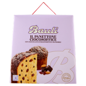 L'esclusiva ricetta del Panettone Ciocosoffice Bauli nasce dalla selezione di ingredienti di eccellenza: il Lievito Madre, l'essenza della sofficità Bauli, l'uvetta sultanina del Mediterraneo, le Mandorle intere adagiate su glassa al cacao e le gocce di cioccolato extrafondenti, un'armonia unica e inimitabile.