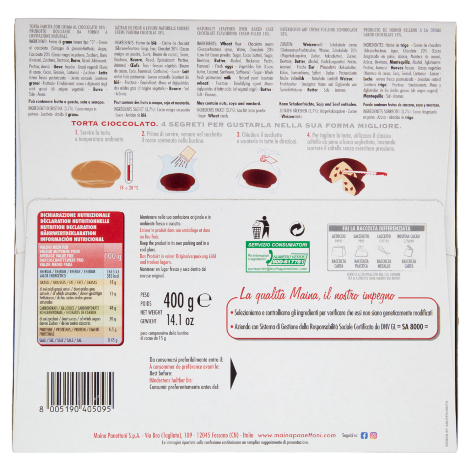 Torta farcita con crema al cioccolato 18% - Prodotto dolciario da forno a lievitazione naturale