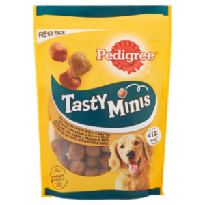 Quantità d'impiego e modalità d'uso: Cani di taglia toy (2-3 kg), dare fino a uno snack al giorno. Cani di taglia piccola (4-9 kg), dare fino a 2 snack al giorno. Cani di taglia media (10-14 kg), dare fino a 5 snack al giorno. Cani di taglia medio-grande (15-24 kg), dare fino a 8 snack al giorno. Cani di taglia grande (da 25 kg ed oltre), dare fino a 11 snack al giorno. Adattate il pasto principale di conseguenza. Da conservare in luogo fresco ed asciutto. Per mantenere la freschezza del prodotto, richiudere la confezione con l'apposita linguetta. Lasciare sempre a disposizione dell'abbondante acqua fresca.