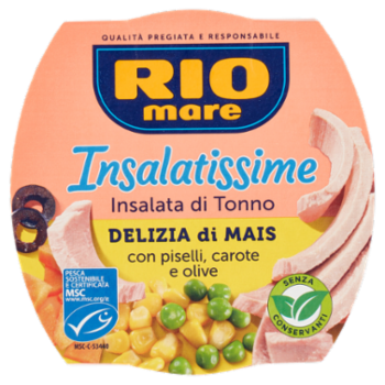 Rio mare Qualità pregiata e responsabile Prova tutte le Insalatissime Rio Mare: insalate di tonno già pronte, ideali così come sono o per arricchire i tuoi piatti. Solo tonno di prima qualità e ingredienti selezionati in ricette uniche, da gustare in casa e fuori. Noi di Rio Mare ti offriamo una Qualità Responsabile in tutti i nostri prodotti. Ci impegniamo per una pesca sostenibile, per il rispetto dell'ambiente e delle persone e promuoviamo un corretto stile alimentare. Scopri di più su www.qualitaresponsabile.it