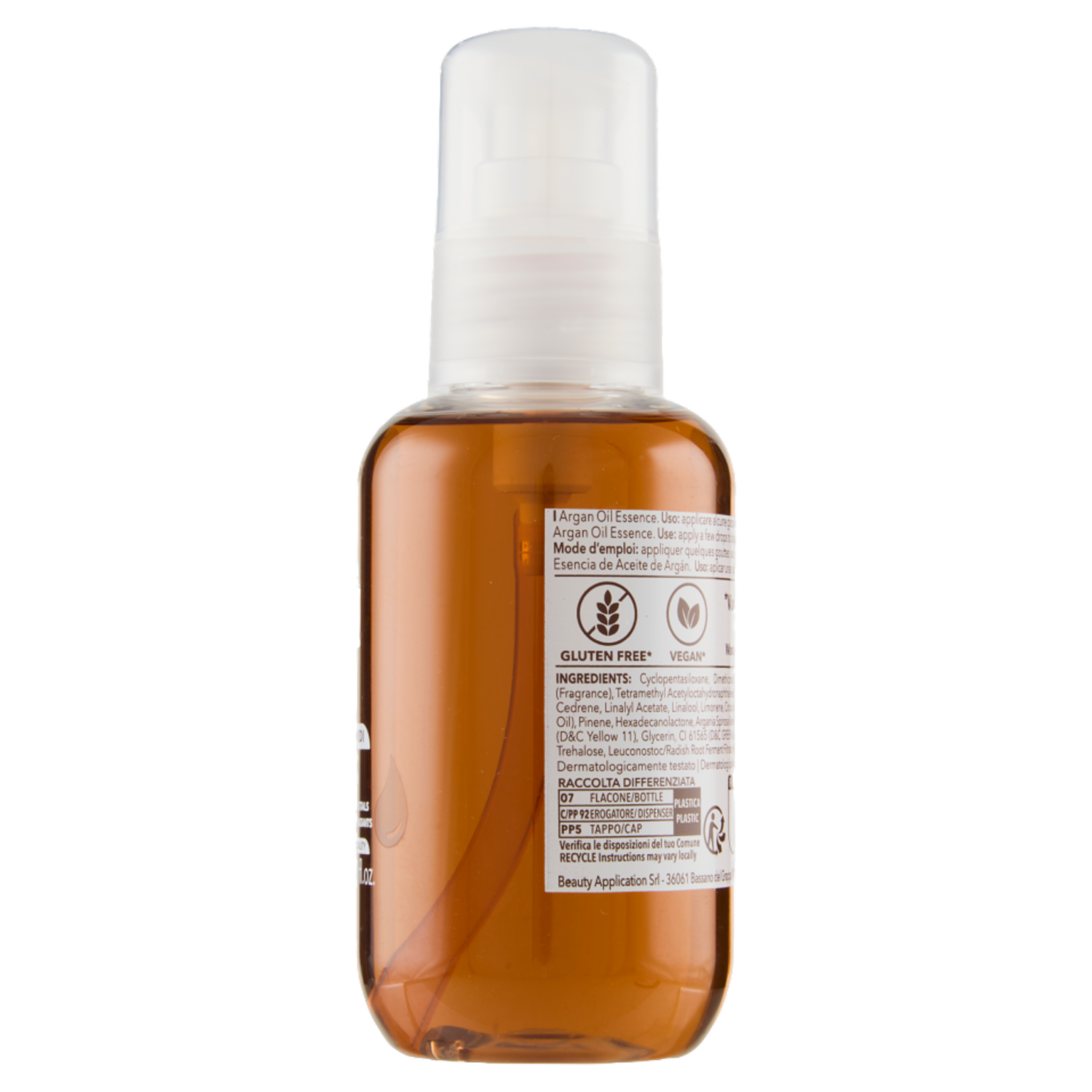 Olio di Argan. Dermatologicamente testato Vegan Formula priva di ingredienti di derivazione animale Gluten free Prodotto contenente ingredienti gluten free adatto anche a soggetti con ipersensibilità cutanea al glutine