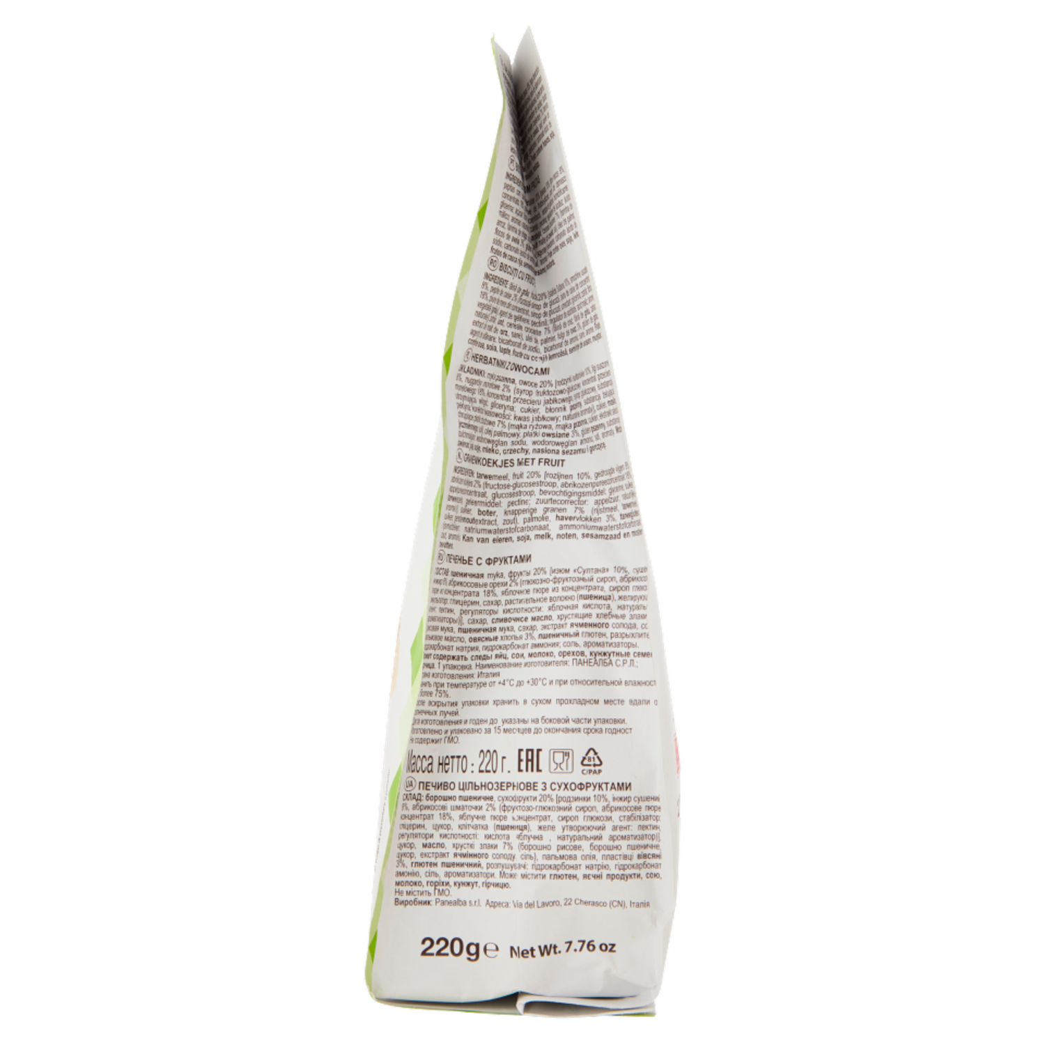 Frutta 20% [uva sultanina 10%, fichi secchi 8%, pepite all'albicocca 2% (sciroppo di fruttosio-glucosio, puré di albicocche concentrato 18%, puré di mele concentrato, sciroppo di glucosio, agente umidificante: glicerina, zucchero, fibra vegetale (frumento), agente gelificante: pectina, correttore di acidità: acido malico, aromi naturali)]