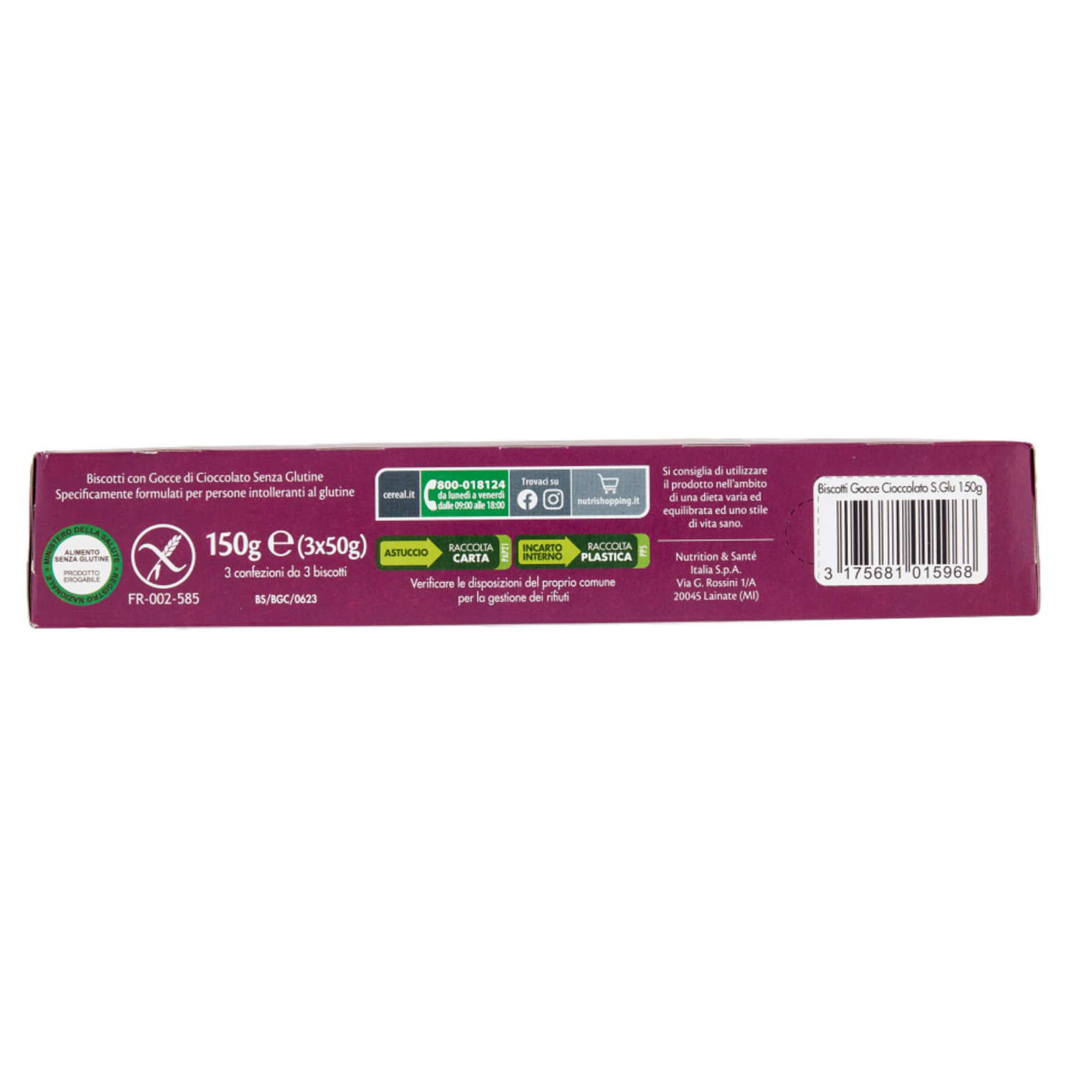 Biscotti con Gocce di Cioccolato Senza Glutine Specificamente formulati per persone intolleranti al glutine