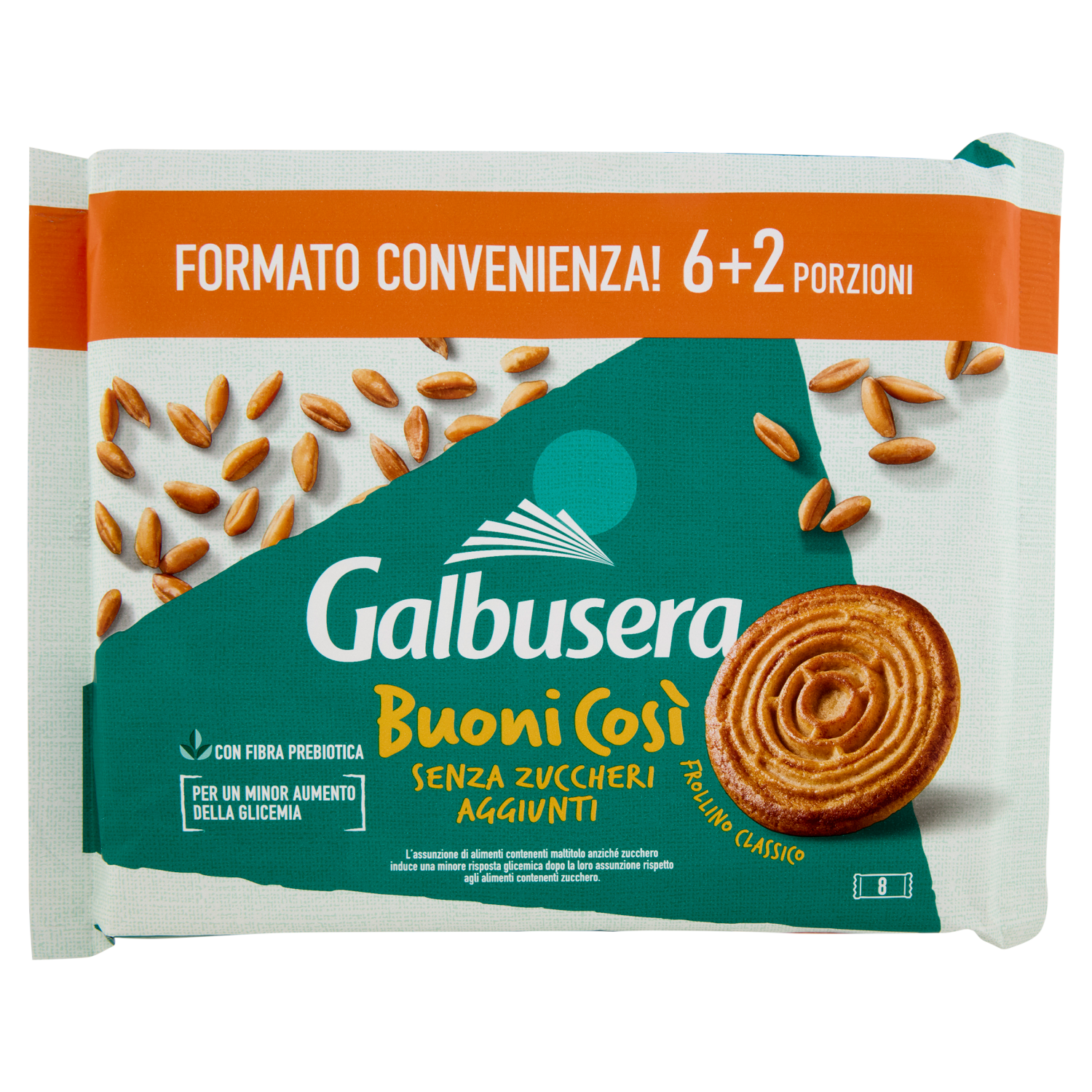 Il Percorso Salute Galbusera Nutre la tua voglia di stare Bene, ogni Giorno. Con il Percorso Salute promuoviamo il benessere, garantendo sempre: Ricette studiate per un'alimentazione equilibrata. Alta qualità materie prime. Oli e grassi non idrogenati. No ogm, olio di palma, conservanti e coloranti. Per un minor aumento della glicemia L'assunzione di alimenti contenenti maltitolo anziché zucchero, come Buonicosì, induce un minore aumento della glicemia dopo la loro assunzione rispetto agli alimenti contenenti zucchero. La Fibra Prebiotica favorisce l'equilibrio della microflora intestinale. Un'alimentazione equilibrata ed una corretta attività fisica ti aiutano ad avere una vita sana.