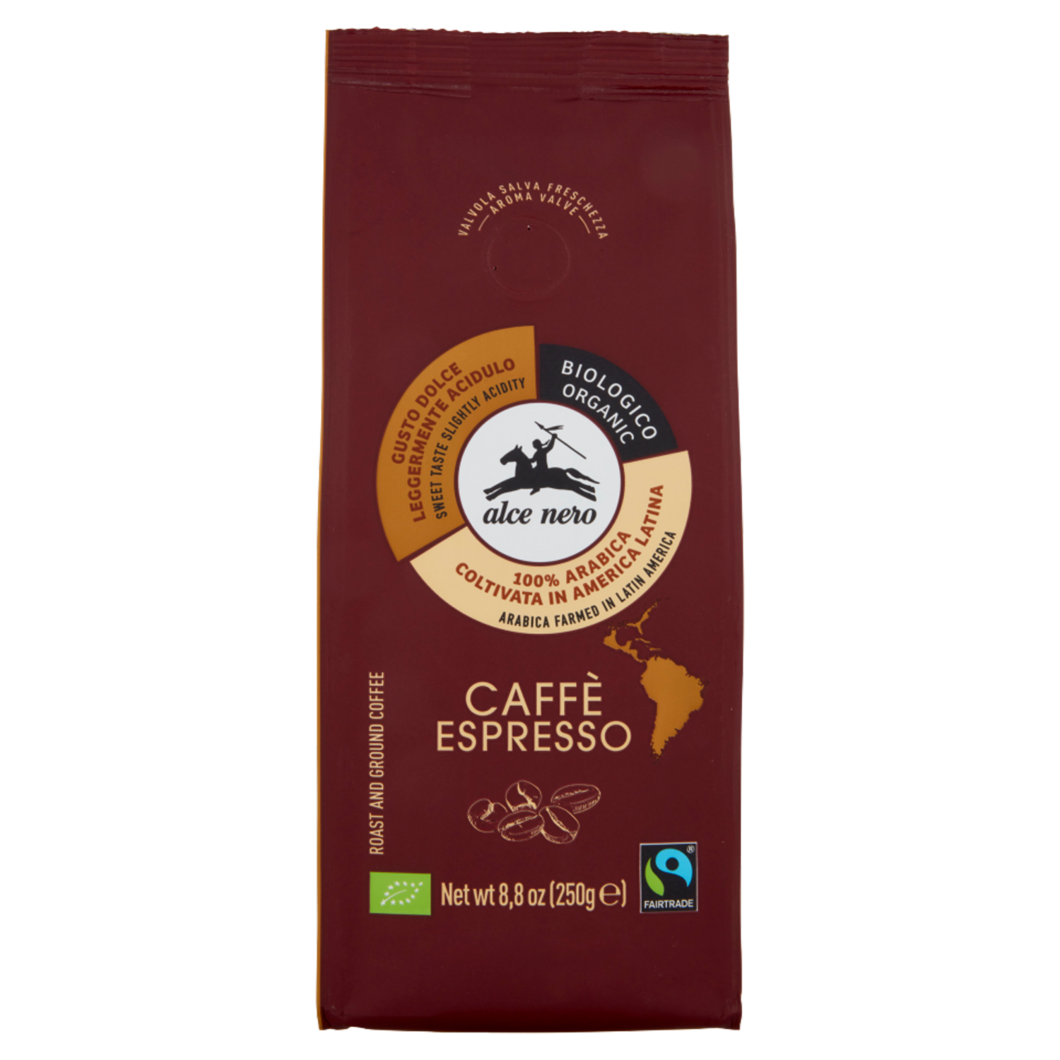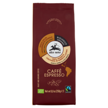 Caffè biologico torrefatto e macinato Il gusto dell'espresso tradizionale: leggero e facilmente abbinabile, rotondo con note di nocciole, frutta a guscio. Retrogusto gradevole e pulito. Etichetta narrante Caratteristiche L'arabica è un caffè ricco di aroma, molto profumato, dolce e leggermente acidulo. Coltivazione Il nostro caffè arabica è biologico e Fairtrade, e proviene dall'America Latina. Le coltivazioni avvengono all'ombra di altre piante da frutto o da legna che aiutano a ridurre l'evaporazione dell'acqua, l'erosione del terreno e a proteggere la piantagione dal sole, oltre ad essere fondamentali per la tutela della biodiversità e ad offrire protezione dal sole all'agricoltore nelle giornate di raccolta. Raccolta e lavorazione La raccolta del frutto maturo (chiamato ciliegia) avviene nei periodi secchi e meno piovosi dell'anno. Le ciliegie contengono due chicchi appaiati, avvolti da una membrana protettiva (il pergamino). Il nostro caffè viene lavorato attraverso il metodo a umido, che garantisce al caffè qualità e pregio, evitando nella maggior parte dei casi il bisogno di interventi successivi di correzione dei difetti. Il caffè verde viene successivamente essiccato, tostato lentamente e successivamente raffreddato ad aria e macinato, al fine di ottenere un assoluto equilibrio in tazza in grado di esaltarne gli aromi". Sostenibilità Grazie alla vendita di caffè Fairtrade, i produttori ottengono condizioni commerciali più favorevoli e hanno l'opportunità di lavorare per il miglioramento sociale e ambientale delle loro comunità. Per approfondire l'etichetta narrante visita il nostro sito: www.alcenero.com Caffè Macinato per espresso biologico 100% arabica La valvola salva aroma Il caffè appena tostato viene confezionato in atmosfera protettiva. Il pacchetto è dotato di valvola salva aroma che salvaguarda l'identità e la forza del gusto originale. Profilo sensoriale Aroma 5 su 5 Corpo 3 su 5 Persistenza 4 su 5 Dolcezza 4 su 5