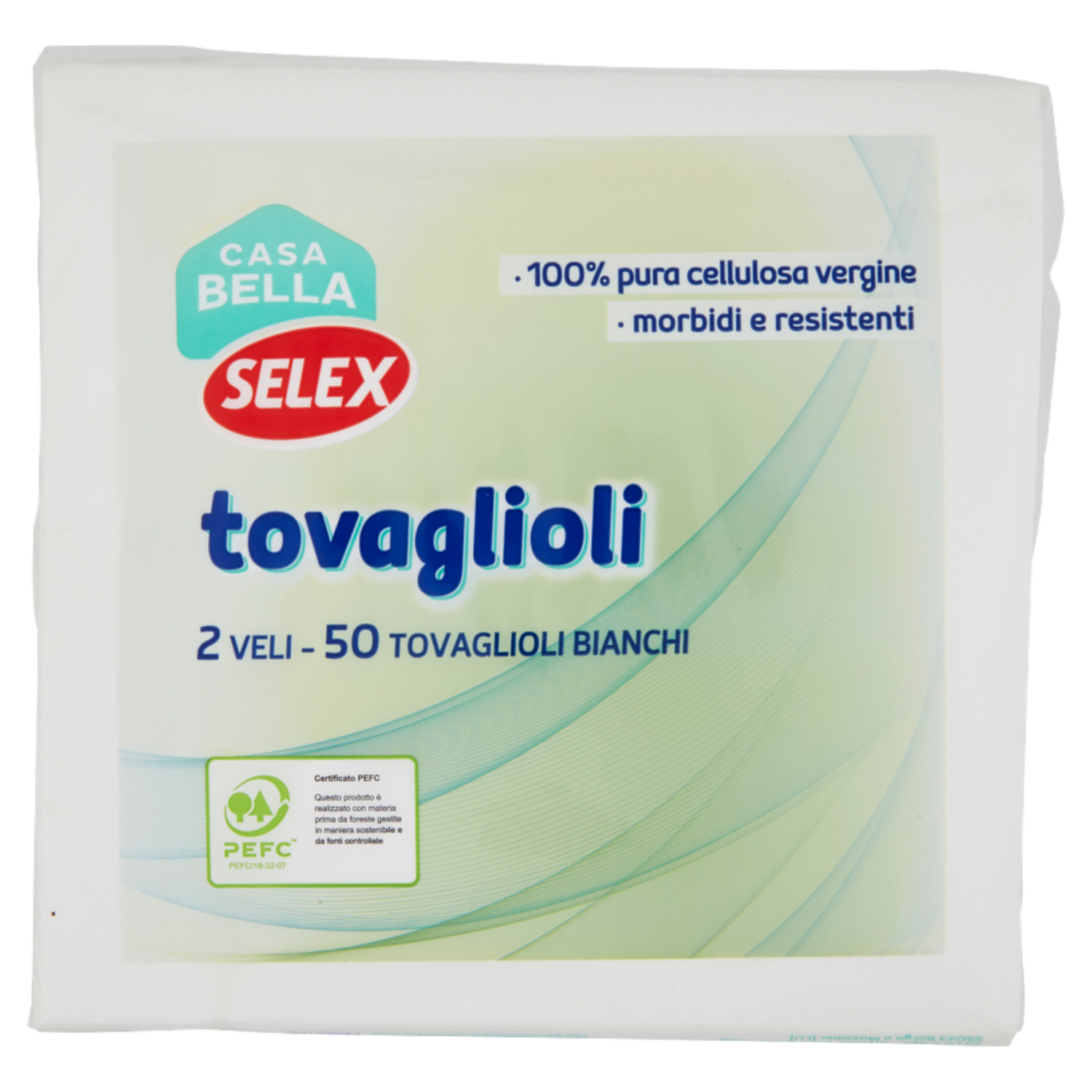 I Tovaglioli Doppiovelo Casa Bella Selex sono prodotti in pura ovatta di cellulosa vergine. Morbidi e resistenti, sono ideali per essere usati tutti i giorni.