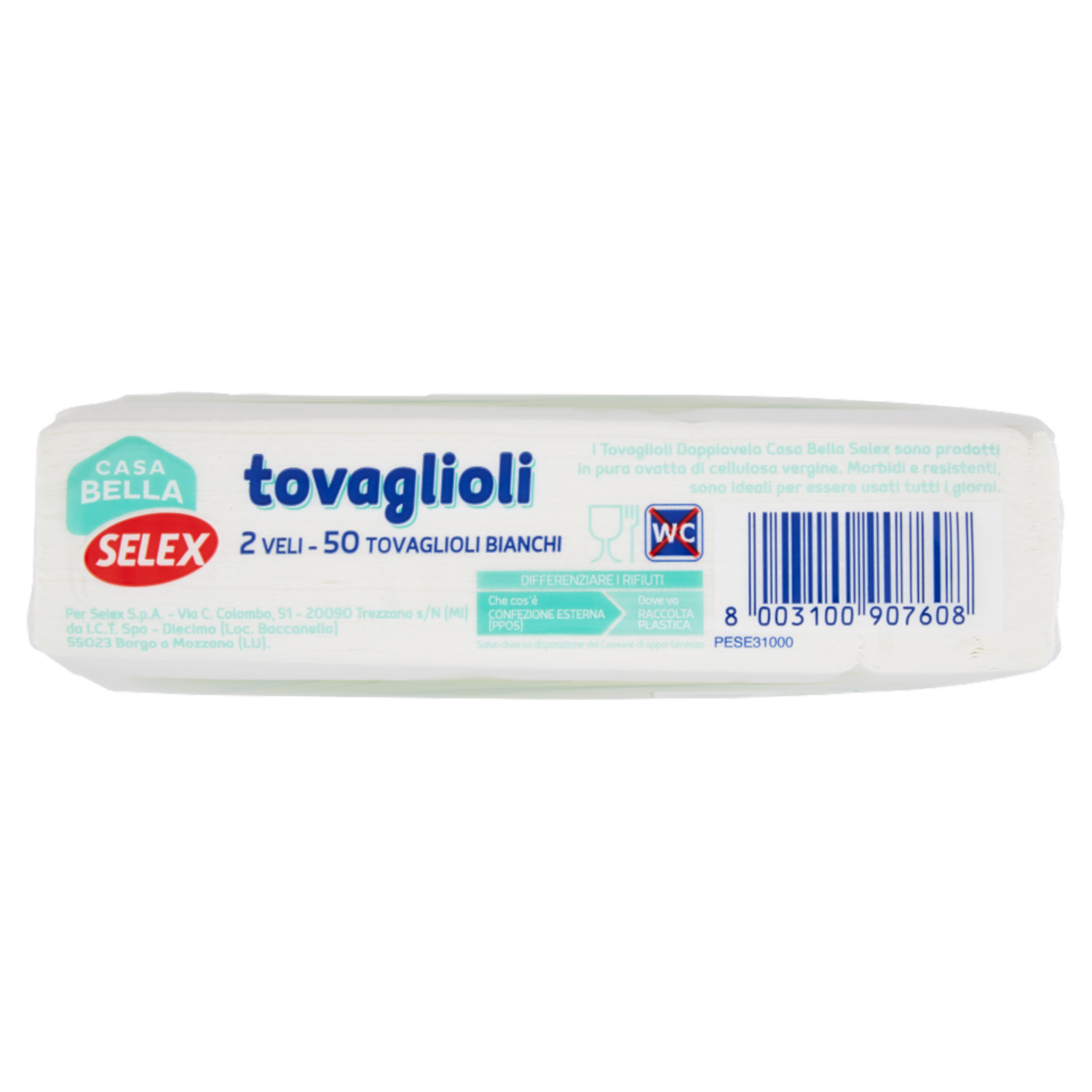 I Tovaglioli Doppiovelo Casa Bella Selex sono prodotti in pura ovatta di cellulosa vergine. Morbidi e resistenti, sono ideali per essere usati tutti i giorni.