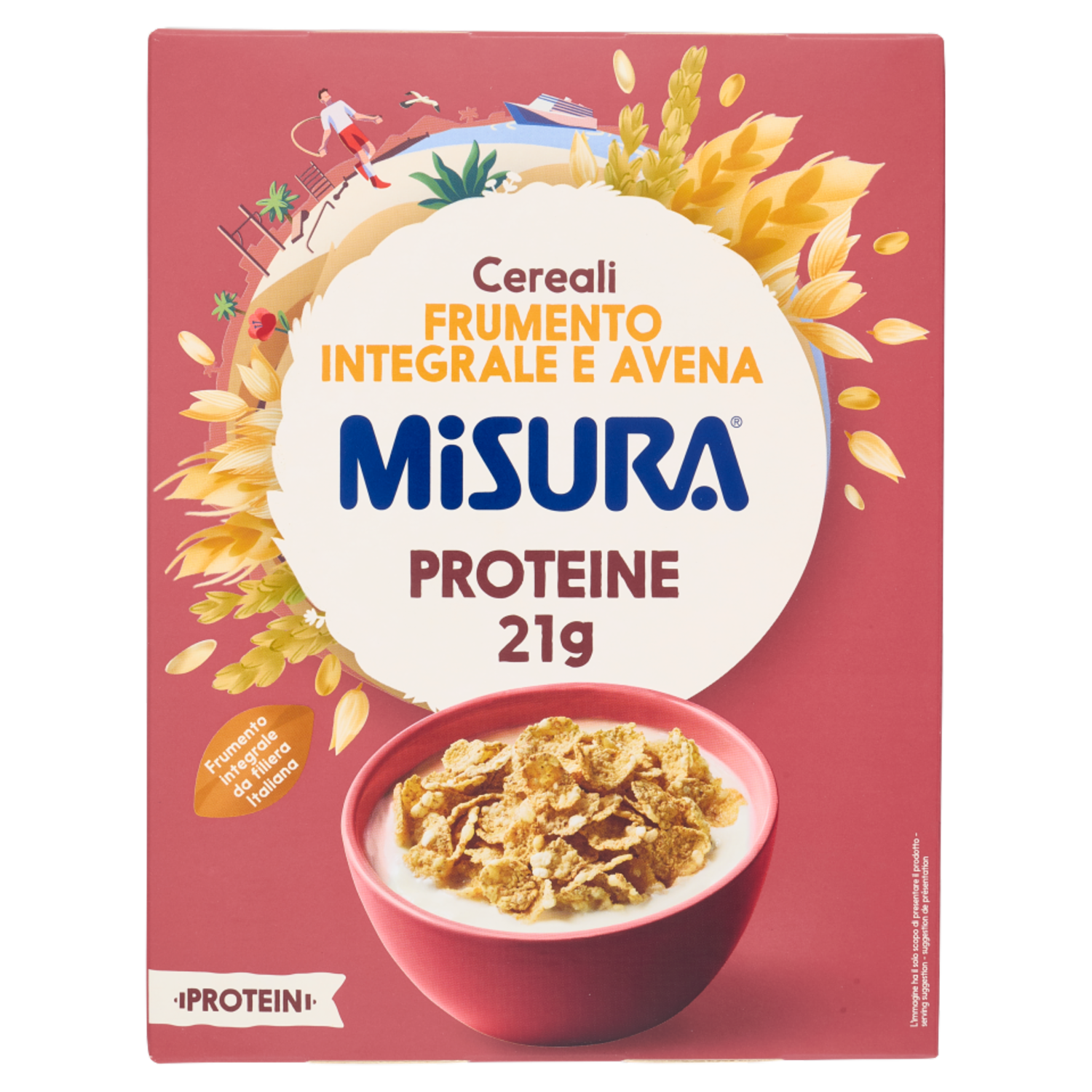 Un mix esclusivo, Ricco di Proteine che contribuiscono alla crescita e al mantenimento della massa muscolare, nell'ambito di una dieta varia ed equilibrata e uno stile di vita sano. Ricchi in fibre Solo con zucchero grezzo di canna Senza aromi Senza conservanti Senza coloranti -50% di Grassi Saturi rispetto alla media dei cereali più venduti (Fonte: unioneitalianafood.it) Ricchi di proteine 21% A misura d'ambiente - con frumento integrale da Filiera Italiana - Astuccio e Sacchetto con Carta Certificata FSC per una gestione responsabile delle foreste e degli ecosistemi.