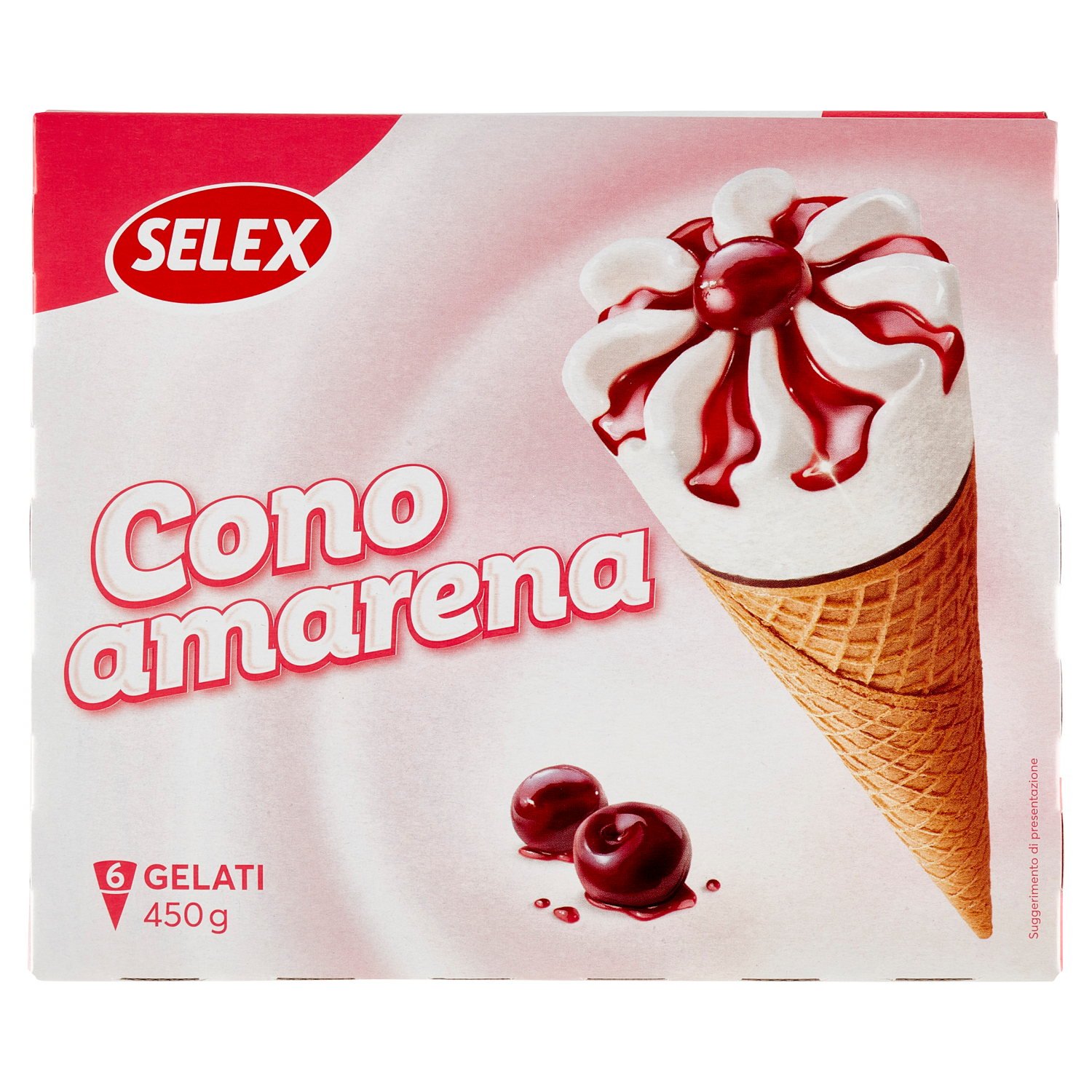 Gelato al gusto di vaniglia variegato all'amarena 16% con cialda e ciliegia candita