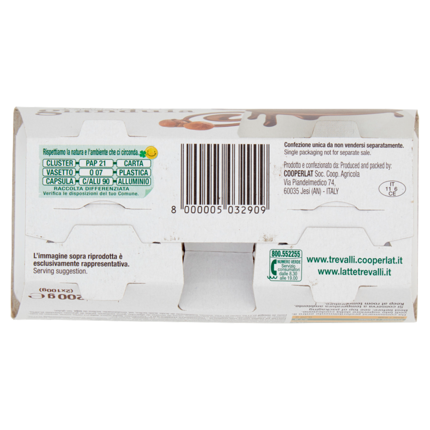 800.552255 Numero Verde Servizio consumatori dalle 8.30 alle 19.00 www.trevalli.cooperlat.it www.lattetrevalli.it Cooperlat Soc. Coop. Agricola Via Piandelmedico 74 60035 Jesi (AN) Italy